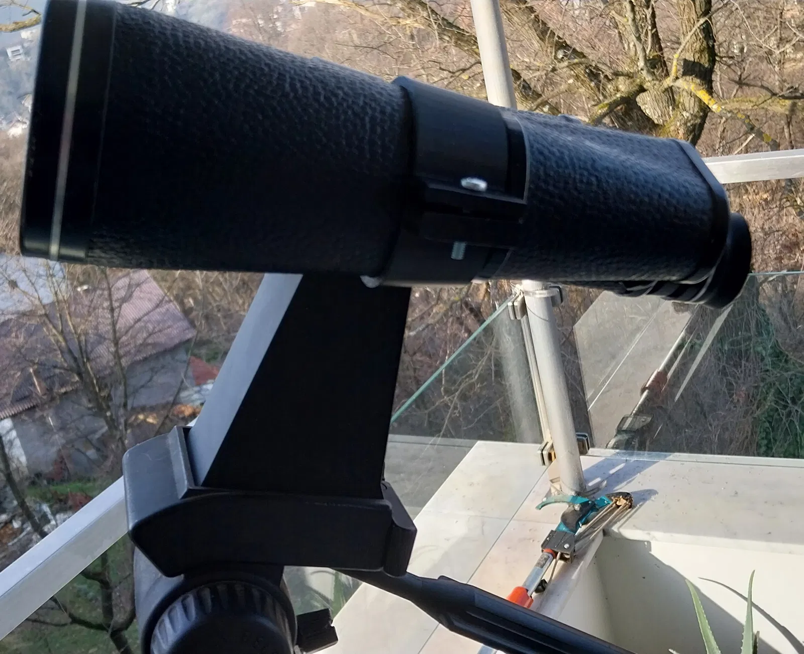 Cái này sẽ có ít người xài được liền vì nó làm riêng cho một cái ống nhòm và cả cái tripod luôn, nhưng mà hy vọng nó sẽ là ý tưởng và là điểm khởi đầu cho các bạn.