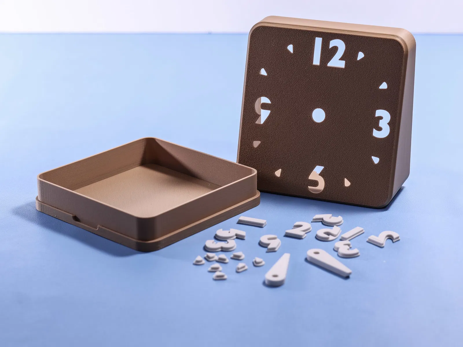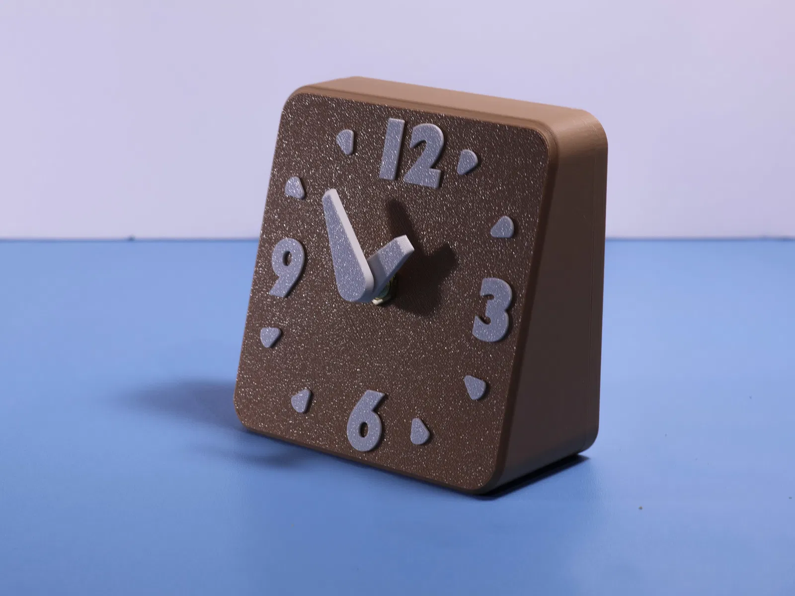 Thiết kế đồng hồ bàn phong cách retro, cho phép tùy biến cách sắp xếp số và vạch trên mặt đồng hồ. Mặt sau có khía giúp mở dễ dàng. Không cần support khi in, dùng bộ máy quartz HD 1688. Có thể phối cùng khay đựng đồng bộ.