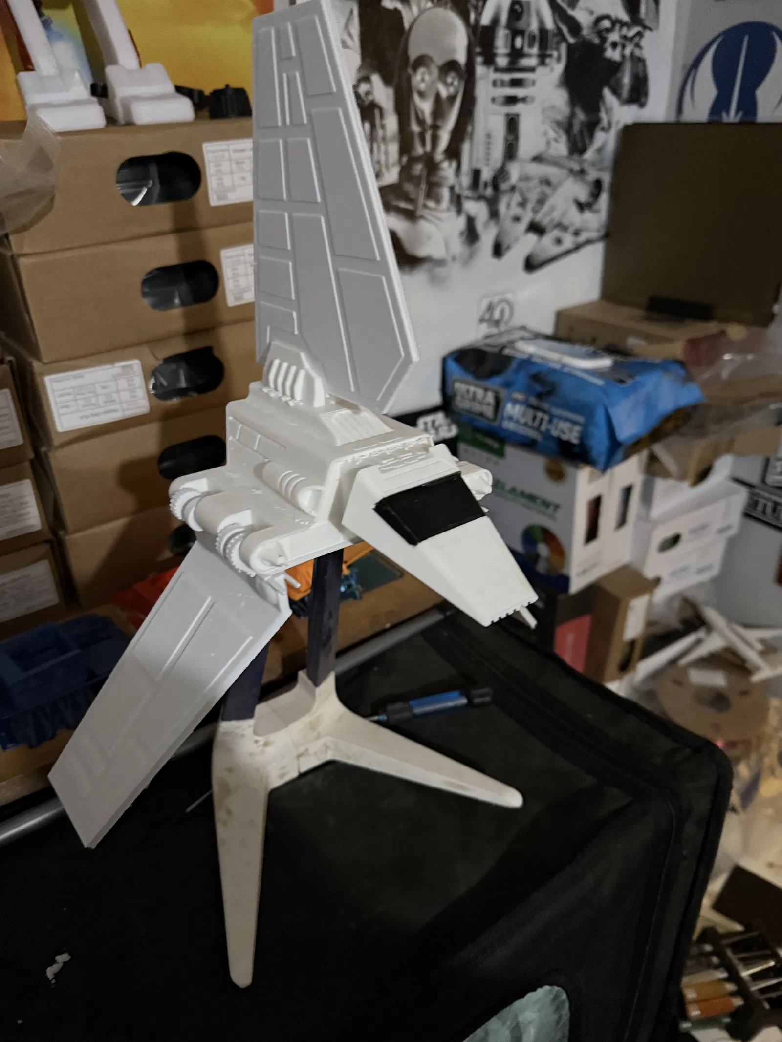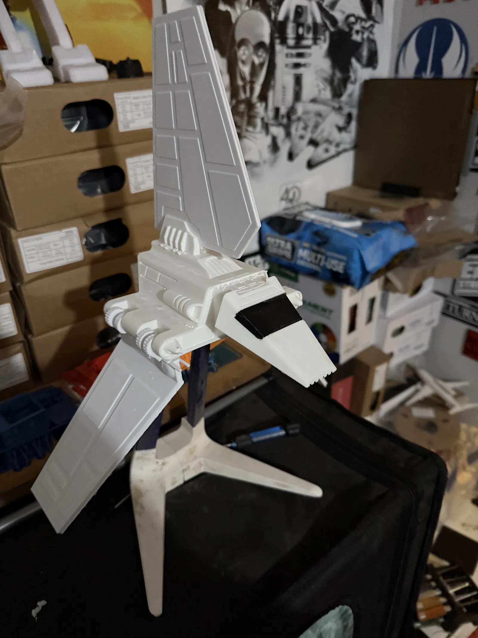 Phiên bản 1.1 của Tàu Con Thoi Imperial Star Wars, với các cải tiến ở thân tàu và khớp nối cánh. Có tùy chọn lắp càng đáp hoặc giá đỡ, tường thuật sắp ra mắt. Phiên bản v2 của thân tàu đã được cập nhật để tránh gãy, và có các điểm riêng để khít hơn.