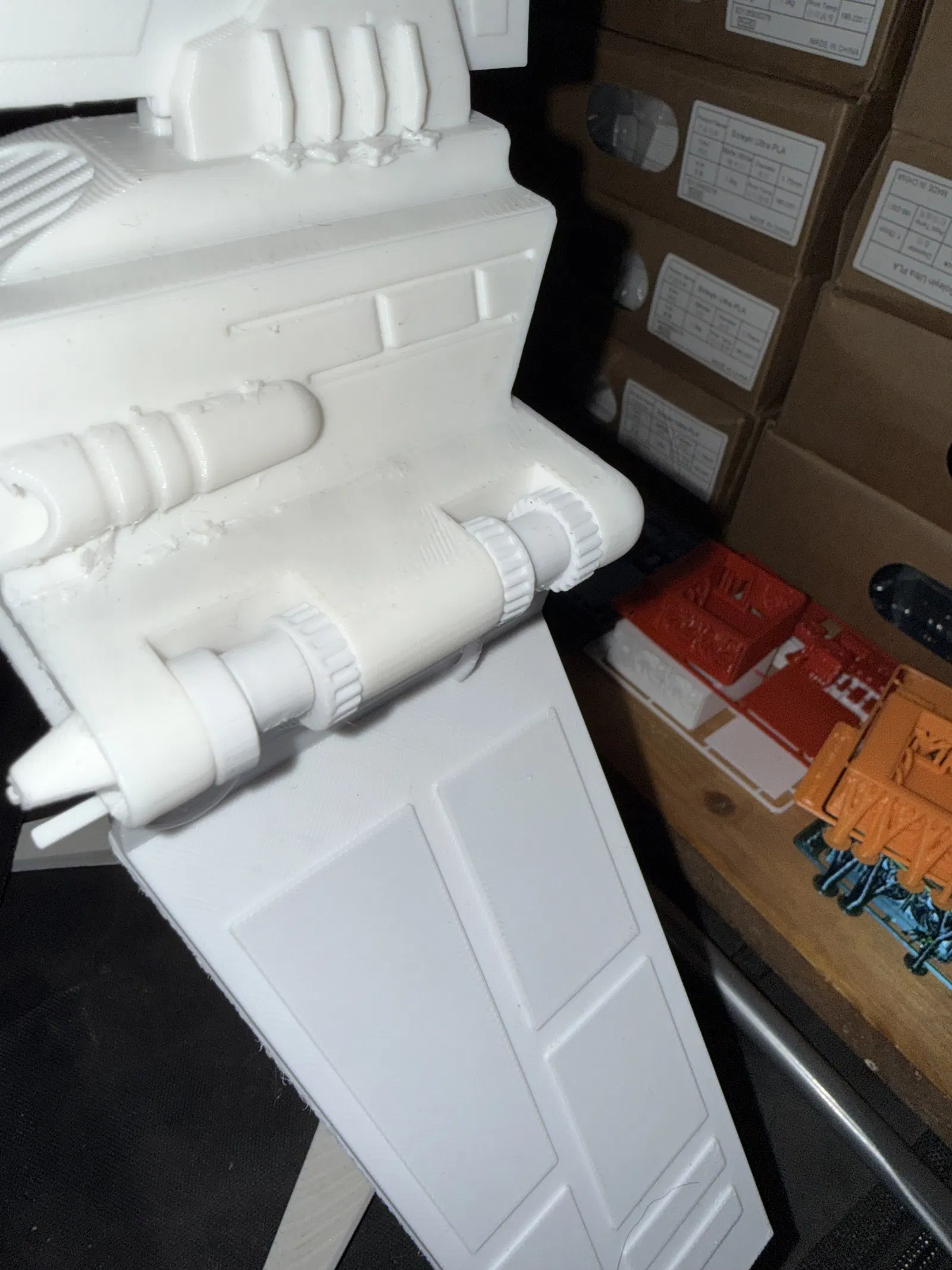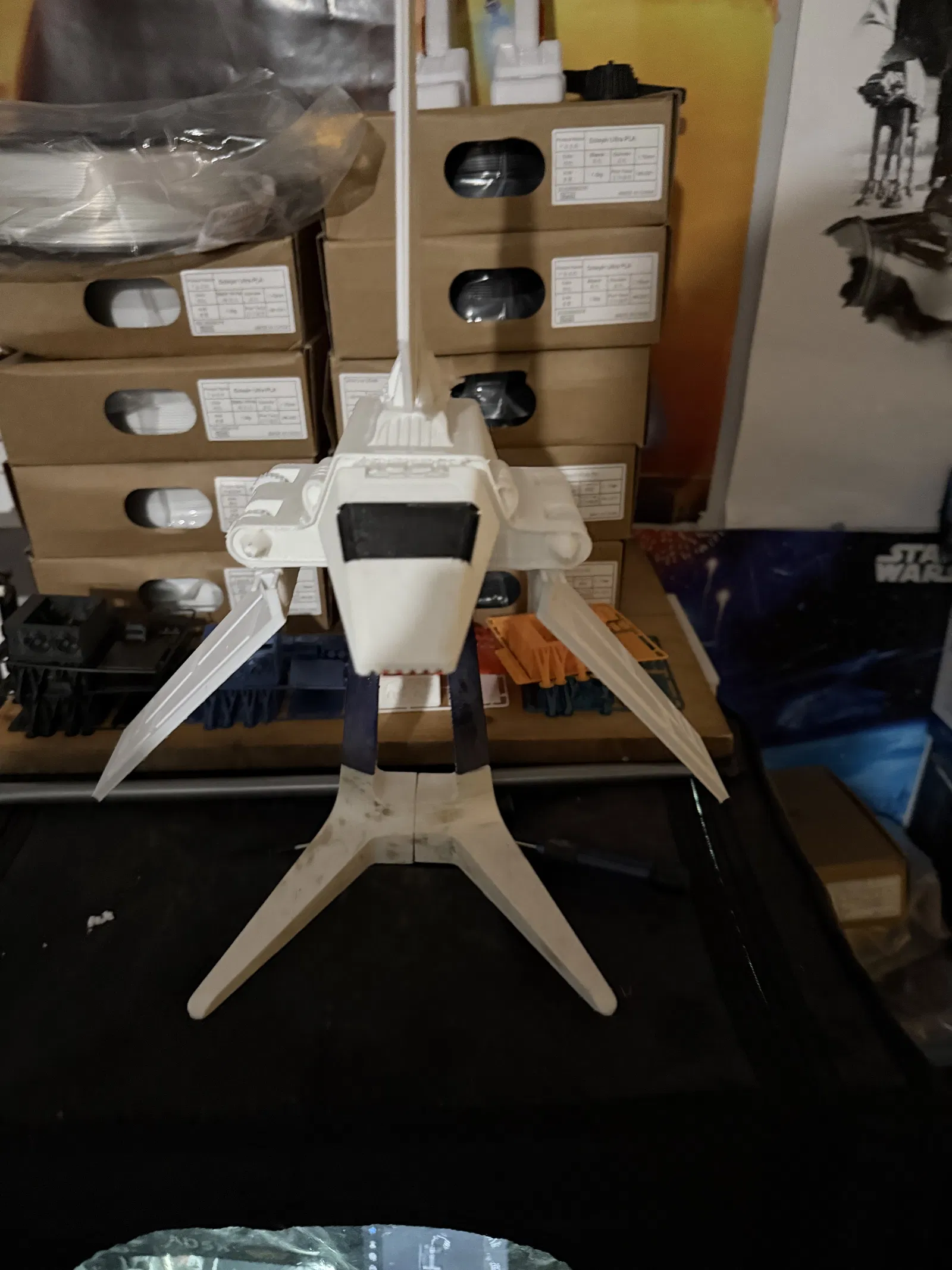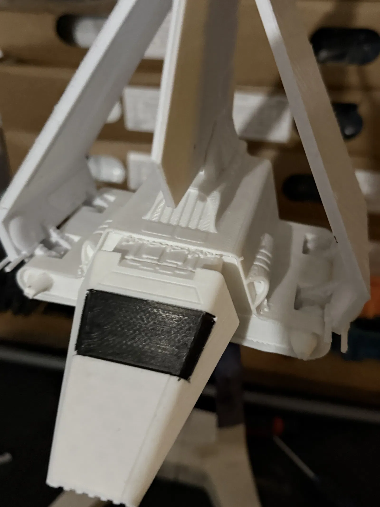 Thân Star wars v2. Khe hở cho các khớp cánh đã được làm rộng ra để tránh bị gãy. Nếu bạn đã in tệp thân v1 khỏi các điểm riêng trên thân để có độ khít tốt hơn.