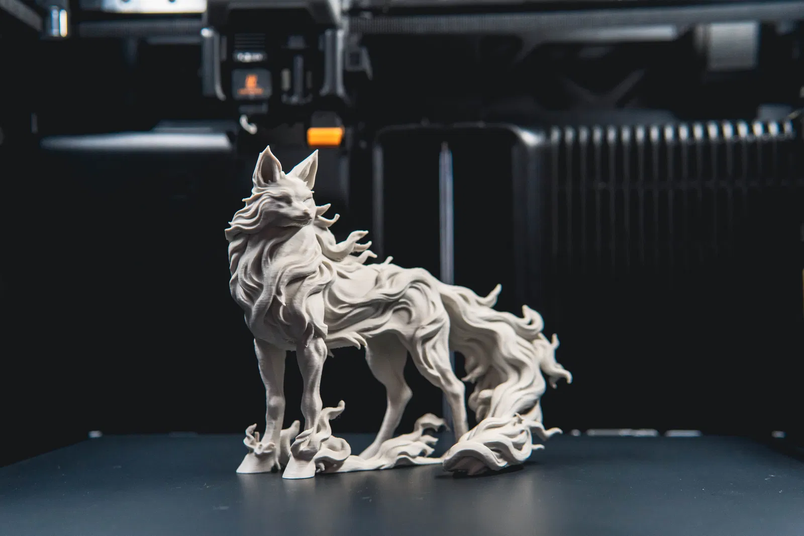 Mô hình "Ethereal Fox" là sự kết hợp tuyệt vời giữa nét mềm mại, uyển chuyển của loài cáo và sự bí ẩn, huyền ảo của thế giới tâm linh. Từng sợi lông, từng đường cong trên cơ thể cáo đều được thể hiện một cách tinh tế, tạo cảm giác như những làn khói mỏng manh đang bao bọc lấy nó. Đặc biệt, phần đuôi xoắn lại đầy nghệ thuật, như một dải lụa mềm mại, càng làm tăng thêm vẻ đẹp thoát tục cho tác phẩm.