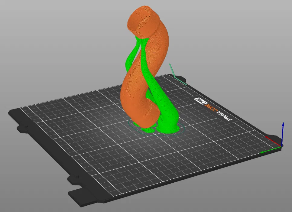 Dùng PLA là ổn áp rồi, không cần vật liệu kỹ thuật gì cao siêu đâu. Cứ in như mặc định nó gửi cho bạn: cái cổ gắn plugin hướng lên trên, nghiêng một góc 45 độ như bạn thấy trong ảnh chụp màn hình từ phần mềm cắt lớp. Bạn chỉ cần support ở trên bàn in thôi, bên trong ống cong thì không cần đâu. Infill 10% (dùng mẫu nào cũng được, không quan trọng lắm) là xong, in xong là xài liền!