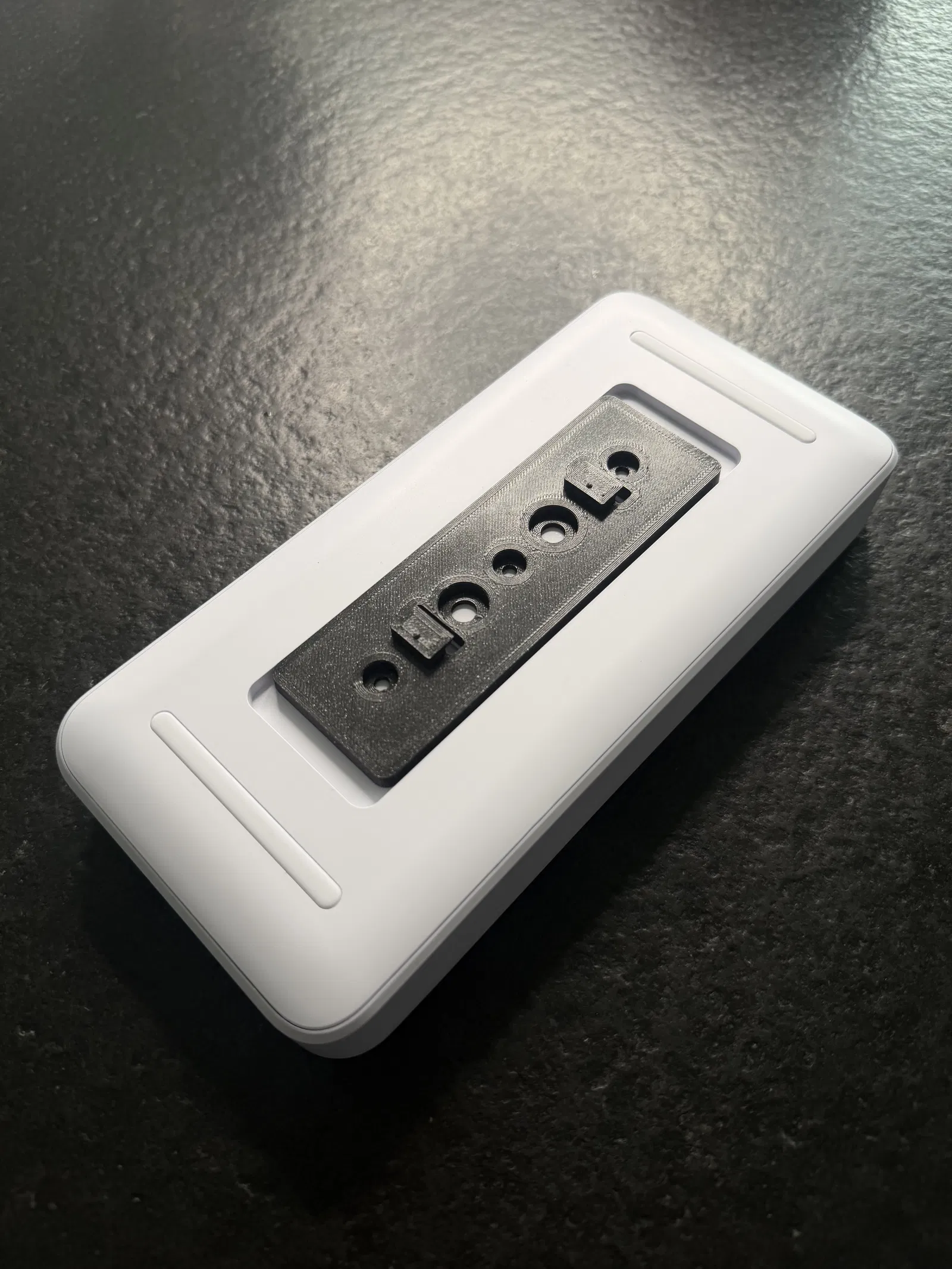 Phiên bản này hẹp hơn một chút (5 mm) so với giá treo zin để giúp thiết bị vừa vặn hơn. Bạn sẽ cần dùng lực nhiều hơn một xíu khi lắp switch vào so với giá treo gốc, nhưng đổi lại nó giữ chắc chắn hơn đáng kể – ngay cả khi bạn lắp ngược.