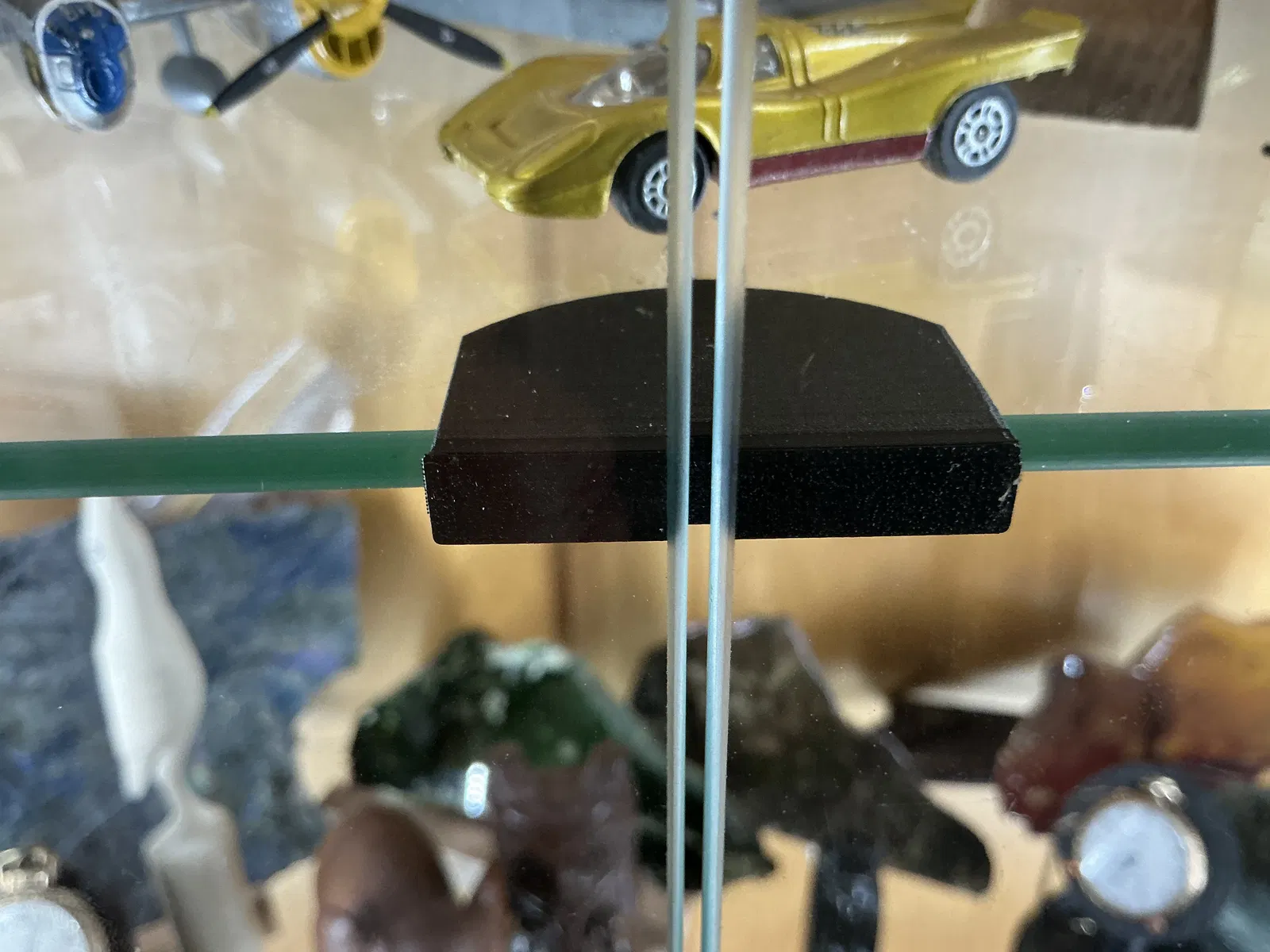 Phụ kiện này giúp ngăn cánh cửa kính va đập trực tiếp vào cạnh kệ kính. Mặc dù trên thị trường có bán sẵn các sản phẩm tương tự hoặc bạn có thể dùng một miếng gỗ nhỏ kèm đệm cao su, nhưng thiết kế này mang lại giải pháp tối ưu, tiết kiệm không gian và rất tinh tế.