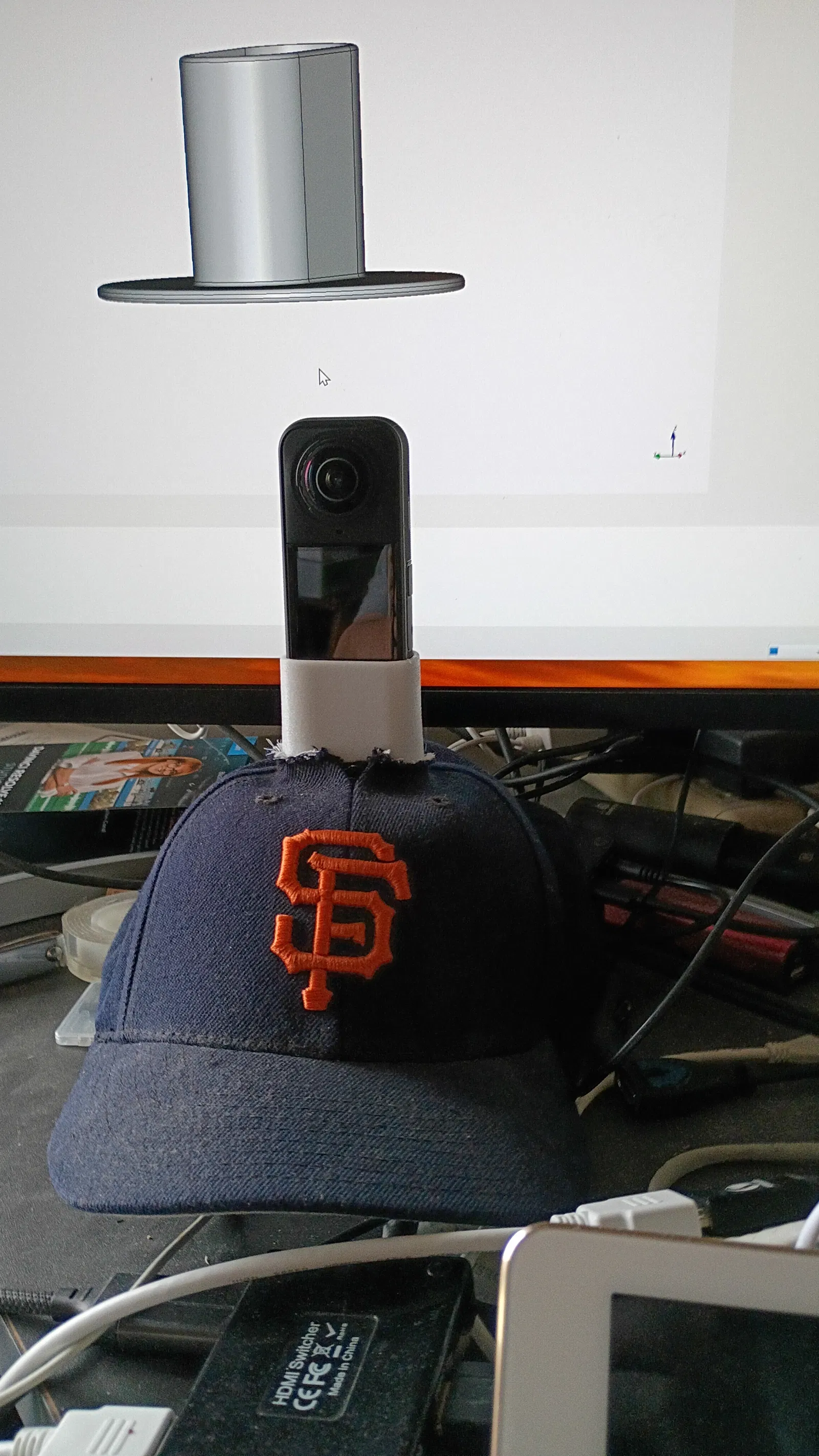 Đây là một cái ngàm đơn giản cho máy quay Insta360 X5. Bạn nên in bằng nhựa dẻo (flexible PLA), sau đó khoét một lỗ trên nón (nón nào cũng được) rồi gắn ngàm qua lỗ đó. Bạn có thể dùng Bluetooth hoặc điện thoại để điều khiển camera khi quay.