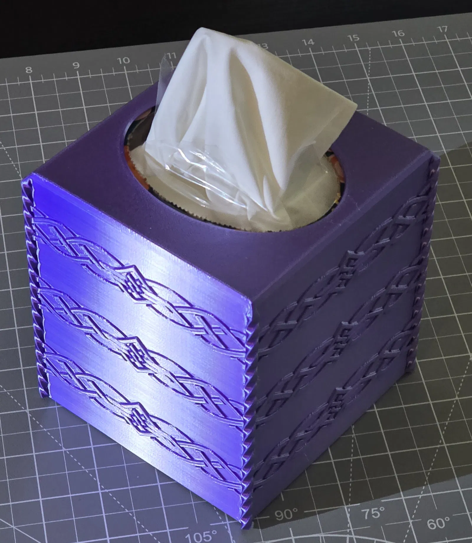 Tăng thêm vẻ sang trọng cho không gian nhà bạn với mẫu hộp đựng khăn giấy họa tiết Celtic độc đáo. Thiết kế vừa vặn cho các loại hộp vuông Kleenex, dễ dàng in ấn với các cài đặt tiêu chuẩn. Mẫu in đi kèm hướng dẫn chi tiết để bạn có sản phẩm ưng ý nhất.