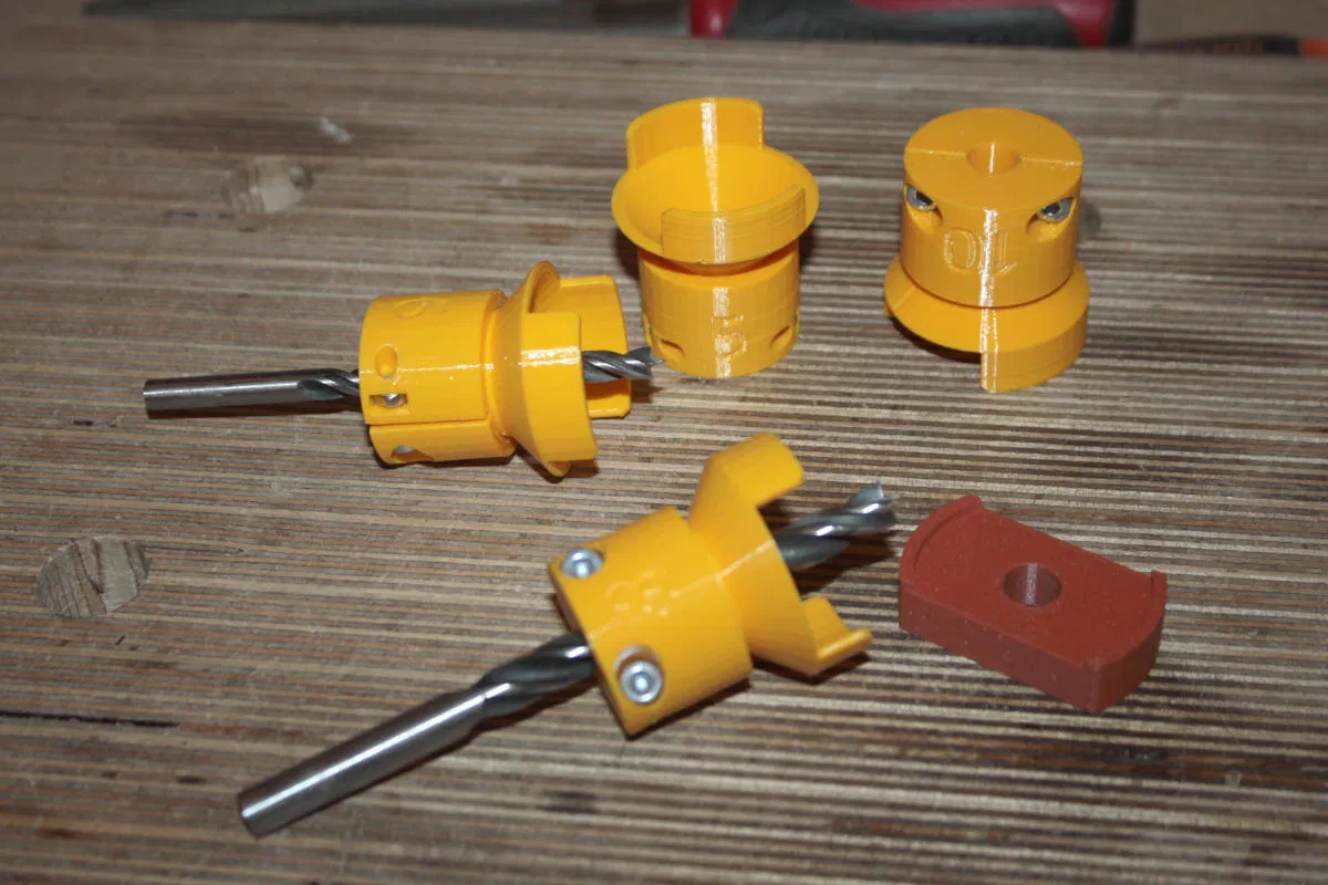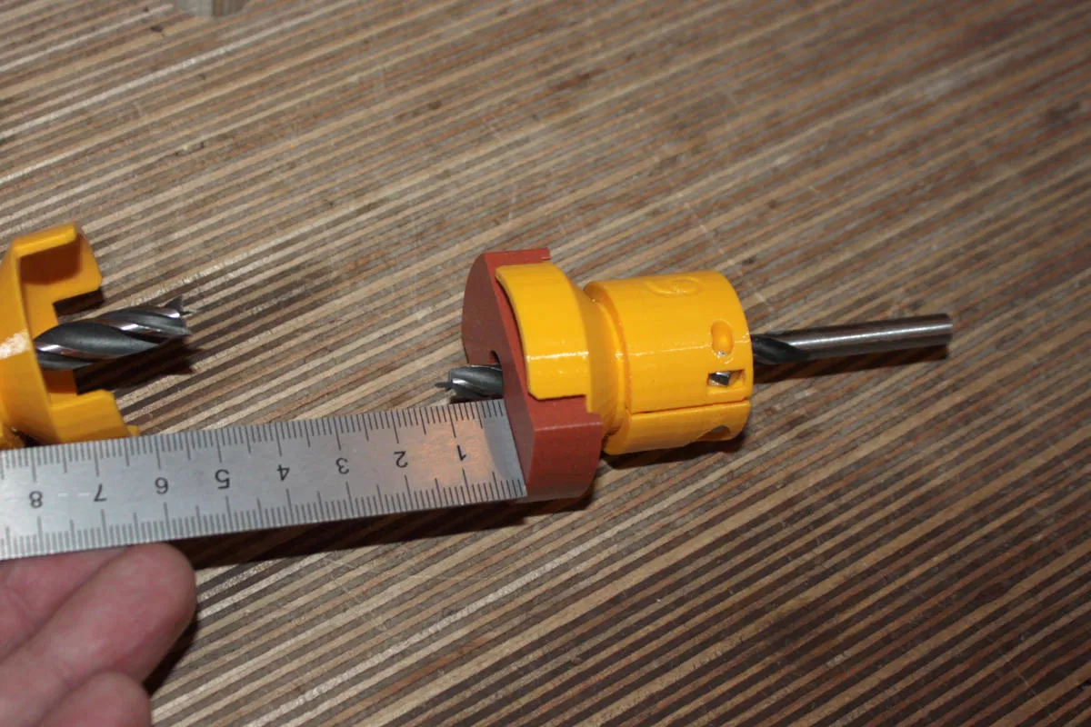 Cữ chặn độ sâu được thiết kế xoay trên ổ bi chặn, giúp bảo vệ bề mặt gỗ không bị trầy xước khi khoan. Thiết kế tối ưu với các khe thoát phôi lớn, kèm theo tùy biến parametric linh hoạt cho nhiều kích thước mũi khoan khác nhau.