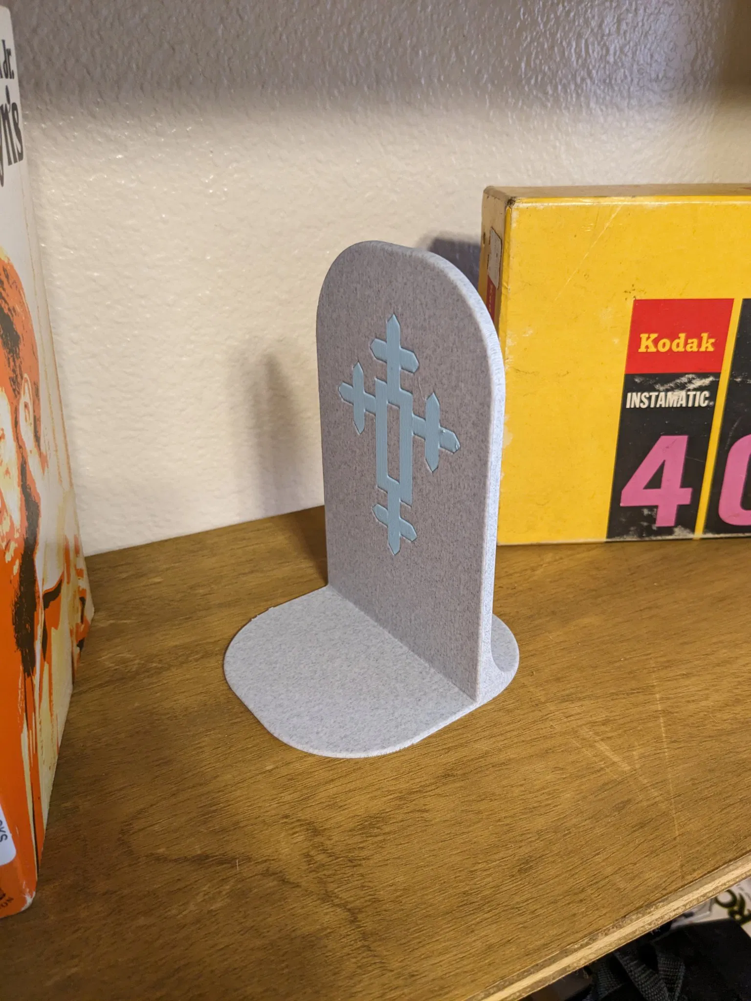 Đây là giá sách. Tôi đã in phần bên ngoài bằng nhựa PLA vân đá. Đây là một bản in đa vật liệu, nhưng tôi cũng đã bao gồm một phiên bản phù hợp cho bản in một màu. Tôi khuyên bạn nên in nó nằm ngang để có các đường lớp dọc và ít thay đổi vật liệu hơn.