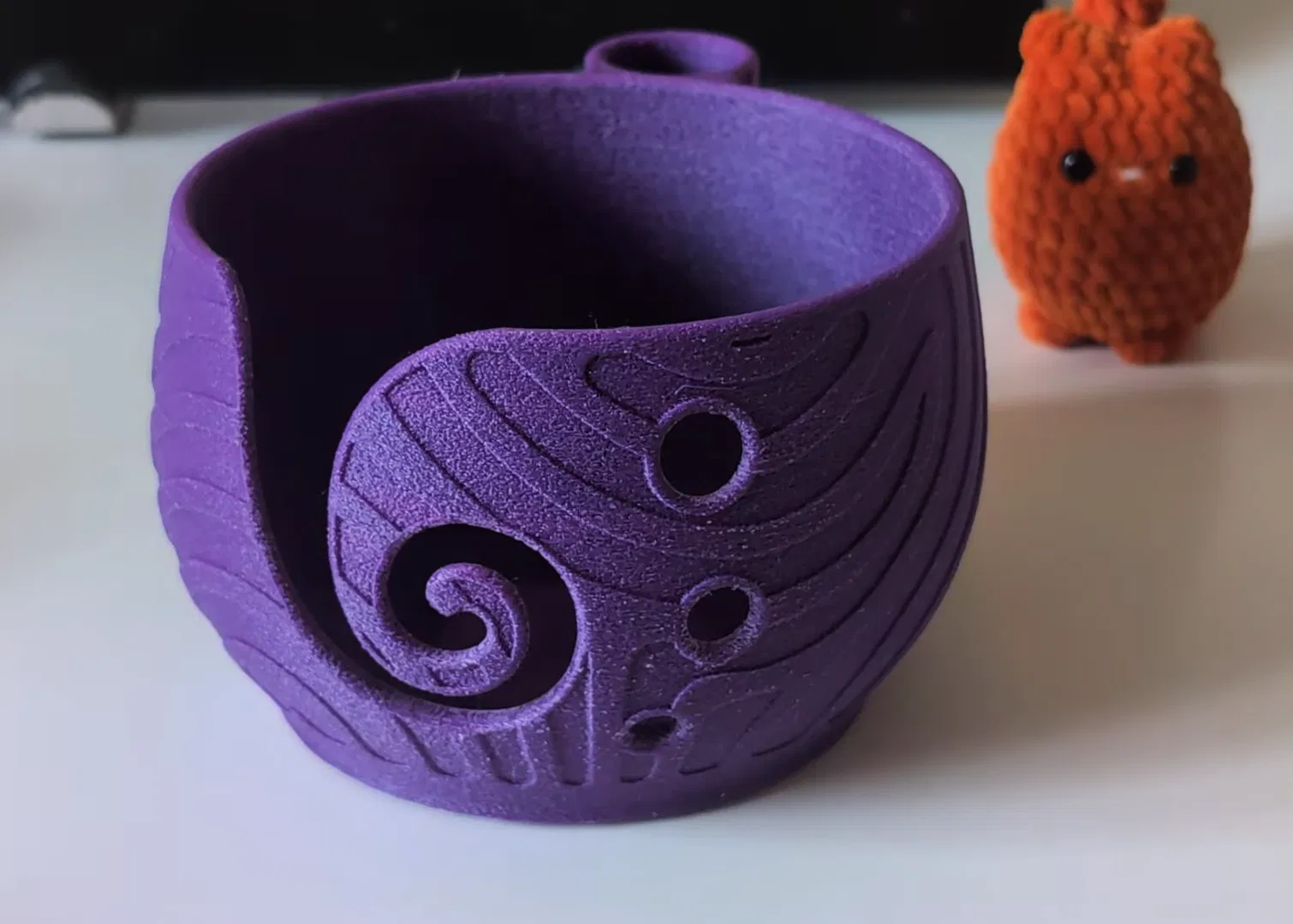 Đây là chiếc bát đựng len tiện lợi được thiết kế để giữ cho cuộn len không bị lăn đi trong lúc bạn đang đan hoặc móc. Rãnh xoắn ốc trơn nhẵn giúp dẫn sợi len ra ngoài dễ dàng, cùng với các lỗ ở bên hông để cắm kim đan hoặc kéo, giúp không gian làm việc của bạn luôn gọn gàng.