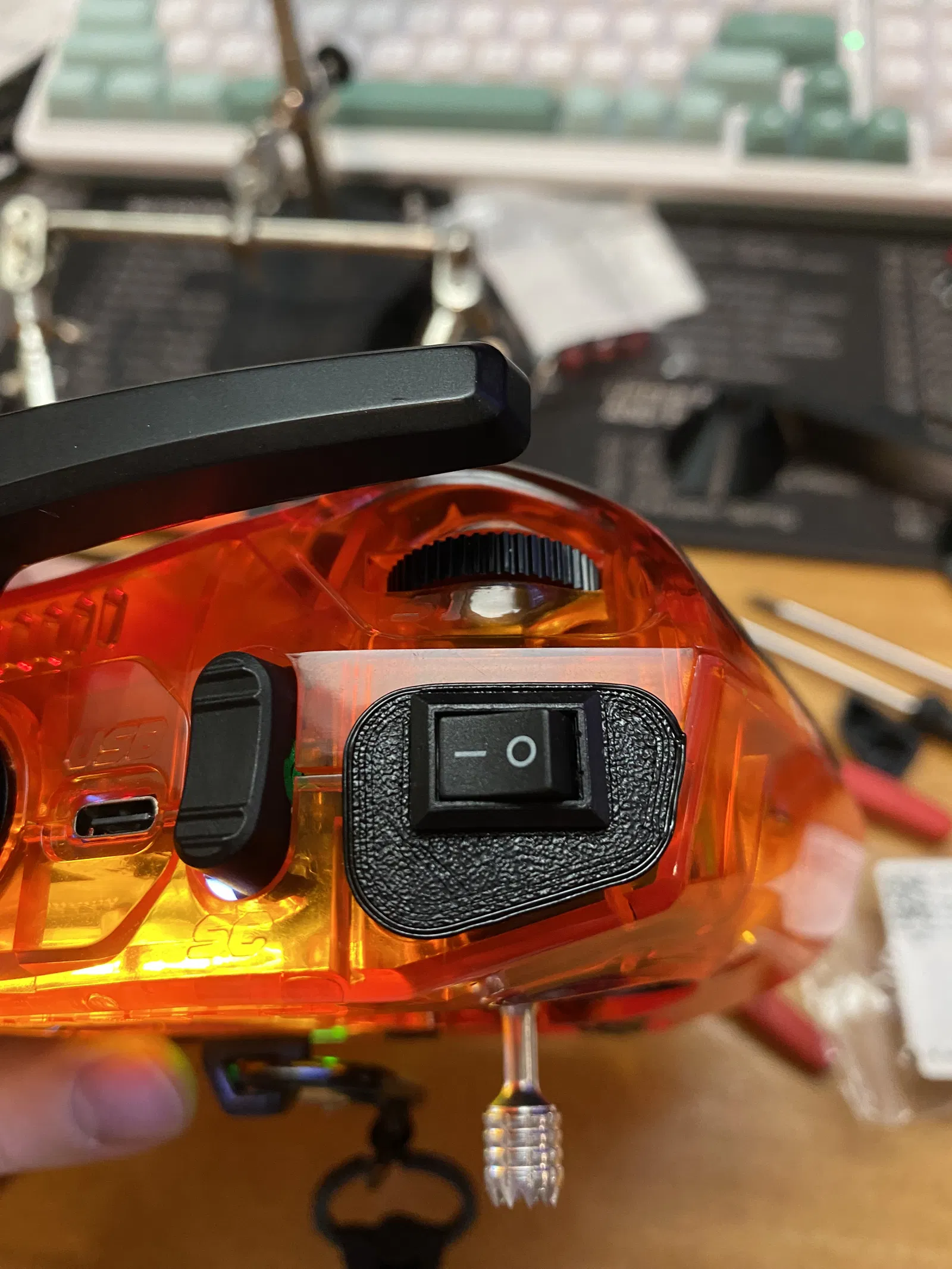 Ngoài ra, mình dùng mỏ hàn để nung chảy một phần nhựa của công tắc dính chặt vào chi tiết in, nhờ đó không cần phải dùng đến keo dán.