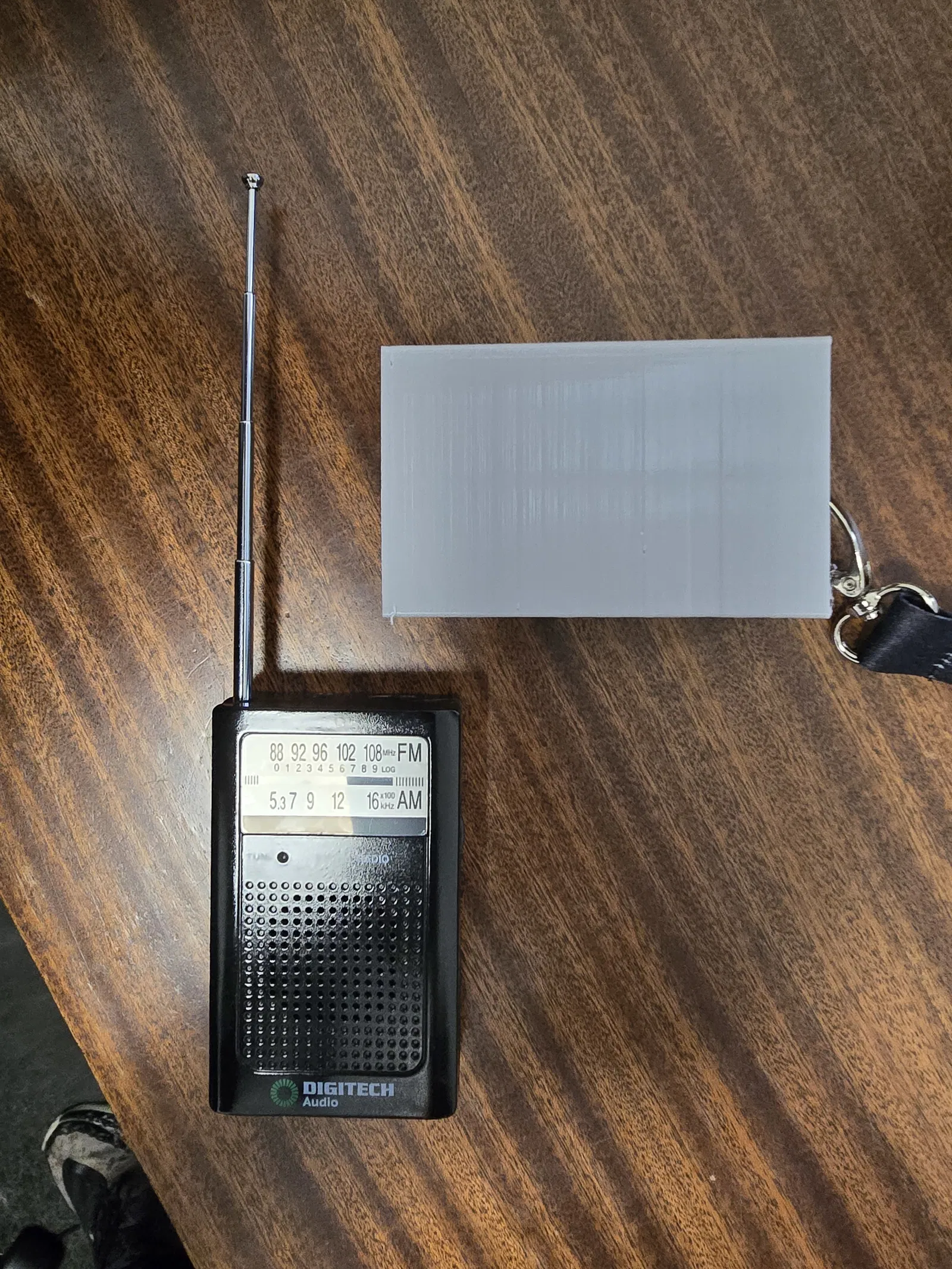 Tui sắp đi xem F1 và không muốn mạo hiểm trông chờ vào việc Amex có radio FM hay không, nên tui đã mua một chiếc đài Digitech Portable AM/FM Transistor giá rẻ từ Jaycar. Sau đó, tui không muốn cứ phải cầm tay suốt nên đã thiết kế cái bao đựng này, có kèm một vòng để đeo dây lanyard.