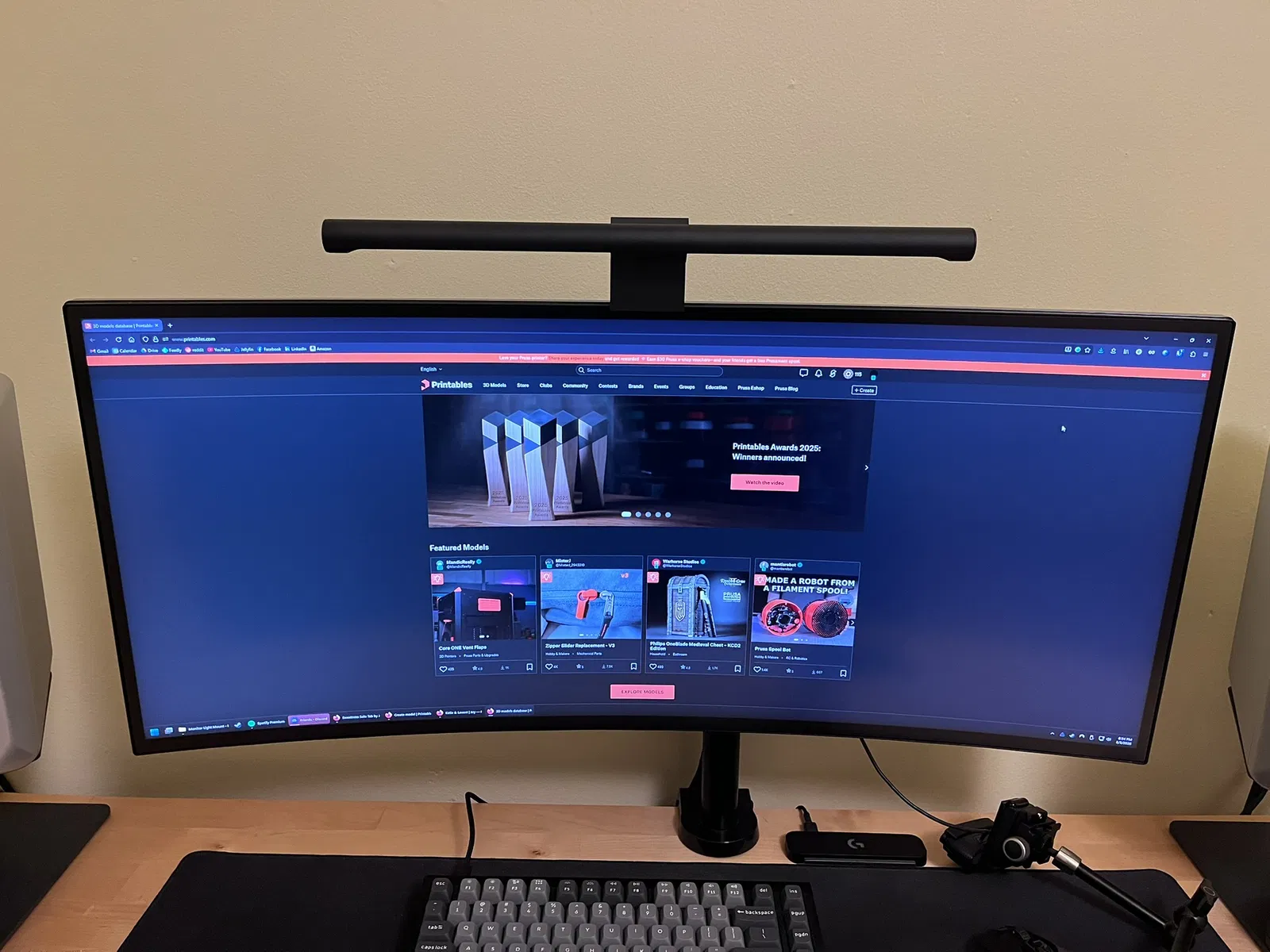 Màn hình LG34GK950G có độ dày quá lớn nên không thể gắn trực tiếp Xiaomi Mi Computer Monitor Light Bar lên được. Mình đã thiết kế lại phần ngàm này để tương thích với độ cong 1900R của màn hình, đồng thời tăng chiều cao để phần đỡ đèn không bị cấn vào cụm đèn RGB ở mặt sau.