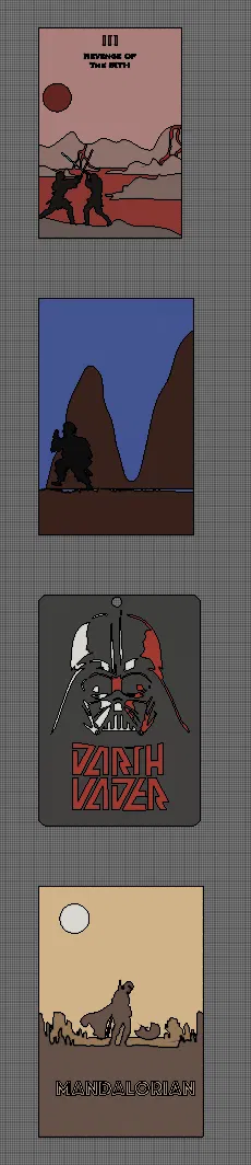 Bạn đang tìm kiếm điểm nhấn cho không gian làm việc hoặc phòng giải trí? Hãy khám phá ngay bộ sưu tập tranh treo tường chủ đề Star Wars cực kỳ ấn tượng này. Với thiết kế phẳng, hiện đại và vô cùng dễ dàng để in 3D, các mẫu poster này mang đến hình ảnh sống động của các nhân vật kinh điển như Darth Vader hay các phân cảnh từ The Mandalorian. Đây không chỉ là món đồ trang trí đơn giản, mà là sự kết hợp hoàn hảo giữa công nghệ in 3D và niềm đam mê điện ảnh. Người dùng có thể dễ dàng in với nhiều màu nhựa khác nhau, tạo nên bức tranh đầy màu sắc mà không cần đến hỗ trợ (support). Sản phẩm sau khi in rất nhẹ, dễ dàng treo lên mọi bề mặt, giúp bạn thỏa sức sáng tạo và cá nhân hóa không gian sống theo phong cách riêng của mình.