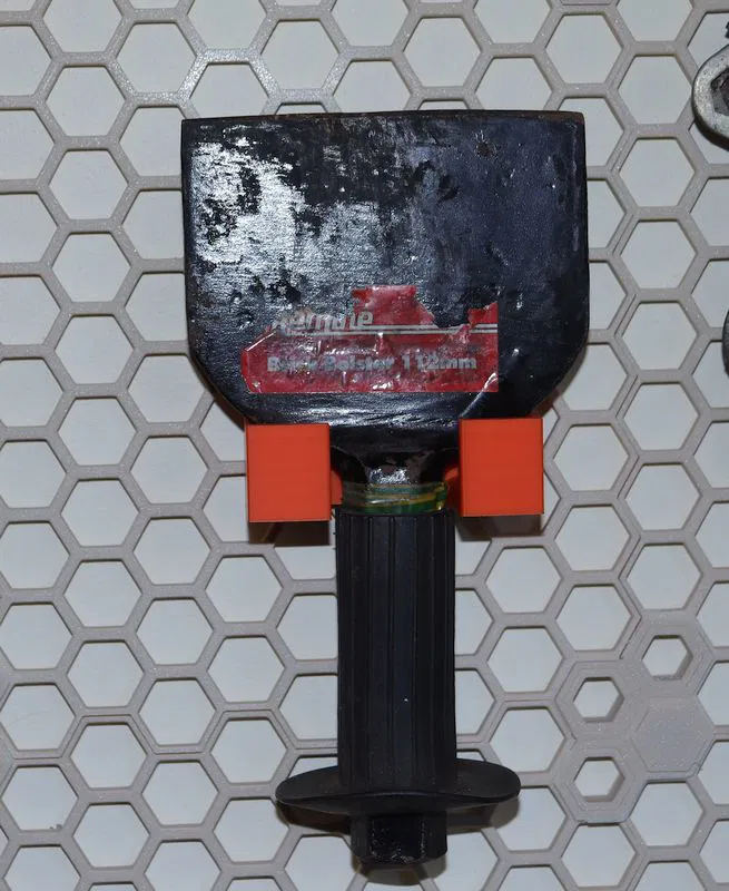 Đây là mẫu giá treo tương thích với hệ thống HSW (Honeycomb Storage Wall) dành cho brick bolster - một loại đục chuyên dụng dùng để cắt gạch. Xin cảm ơn RostaP vì thiết kế Honeycomb Storage Wall tuyệt vời này, mình đã sử dụng hai chi tiết lắp ghép (inserts) từ thiết kế gốc của anh ấy. Mẫu này mình in bằng nhựa PETG, thiết lập 5 lớp tường (walls), 5 lớp bề mặt trên/dưới và mật độ infill 45%. Việc thiết lập như vậy là cần thiết để đảm bảo độ cứng cáp vì dụng cụ này chủ yếu làm bằng thép nên khá nặng. Mẫu in tốn khoảng 46g nhựa và mất 1 tiếng 20 phút để hoàn thành trên máy in BBL A1.