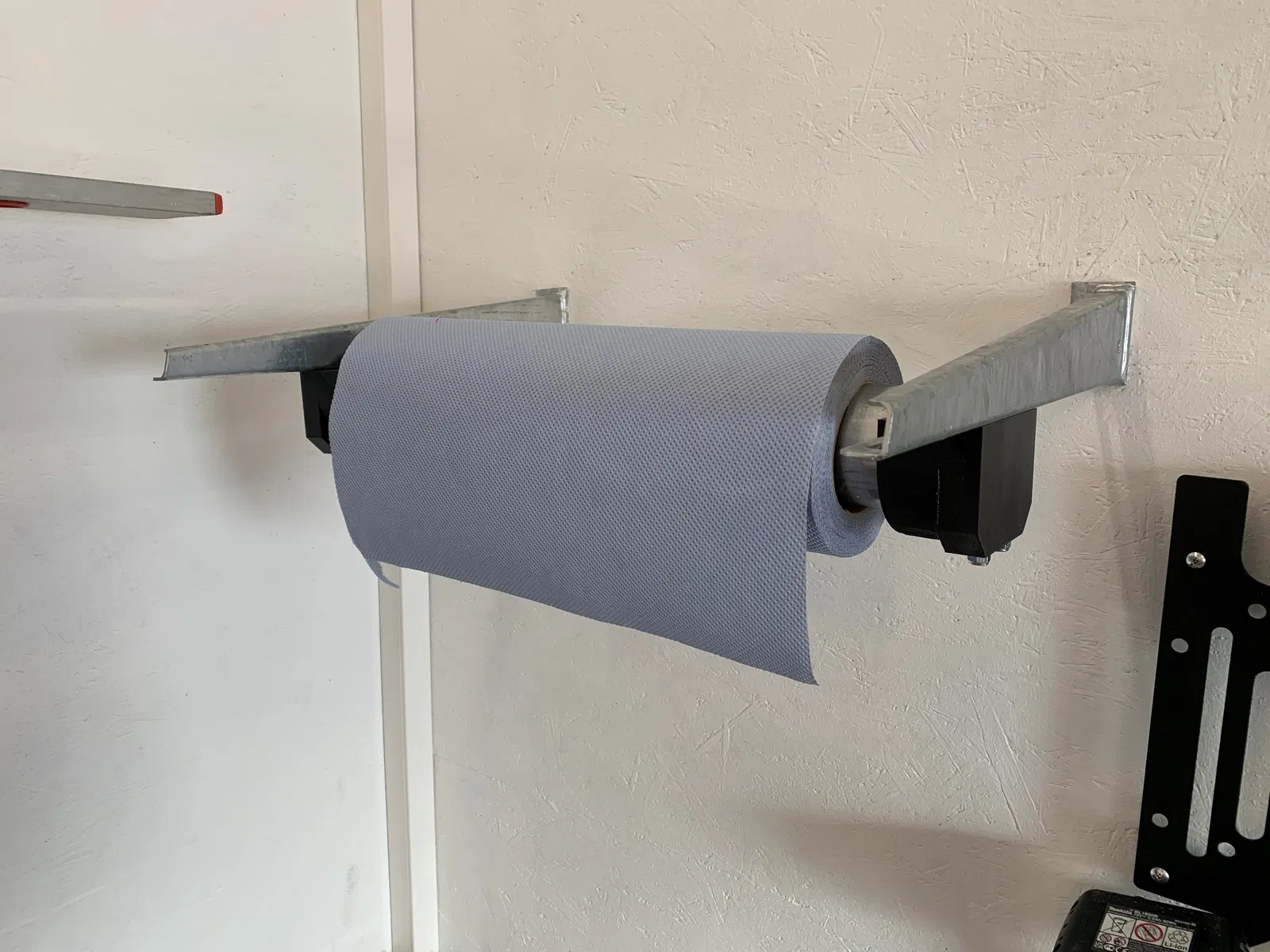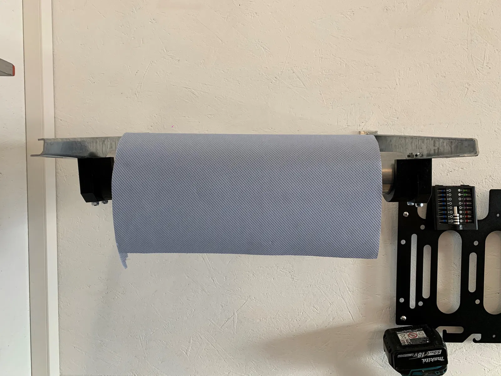 -> cần chuẩn bị: 2x giá đỡ (có thể gắn tường, dưới bàn làm việc, kệ treo tường hoặc tủ treo), ốc vít và đai ốc M5, cùng một ống kim loại (độ dài tùy chỉnh theo chiều rộng của cuộn giấy)!