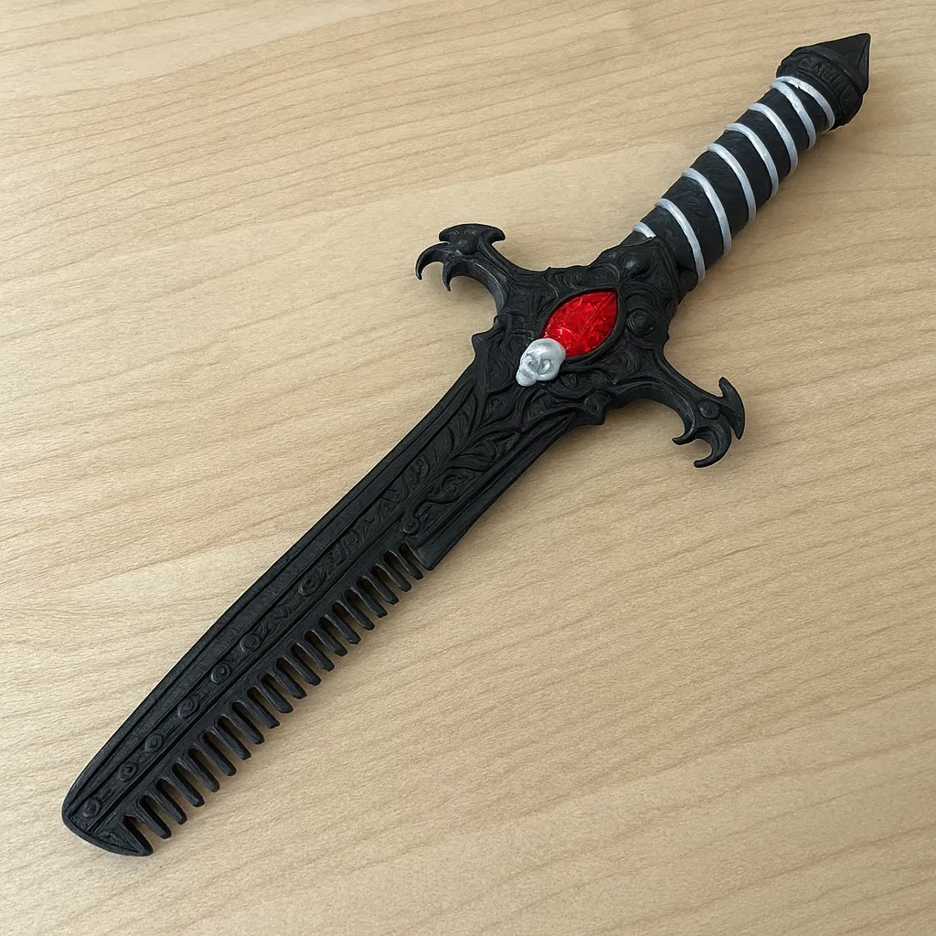 Chiếc lược hình thanh kiếm gothic giúp gỡ rối cho mái tóc của bạn theo cách quyền lực nhất. Thiết kế ấn tượng, in 3D dễ dàng, biến việc chải đầu hàng ngày thành một trải nghiệm đầy kịch tính và đậm chất dark/goth.