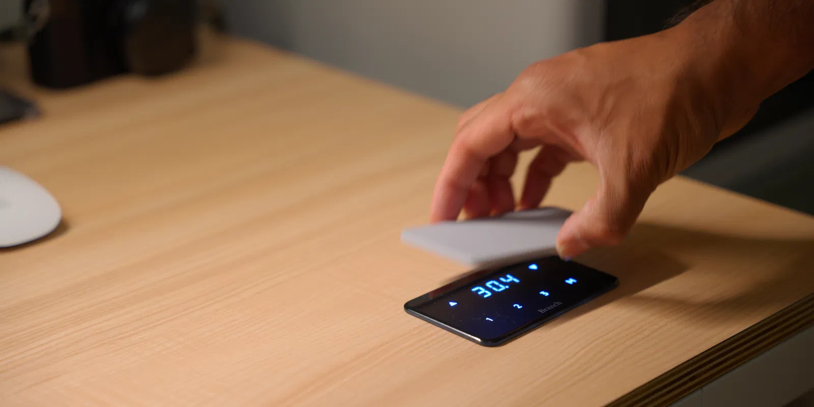 Cái bảng điều khiển trên bàn đứng 4 chân Branch rất dễ bị chạm nhầm, nên mình đã thiết kế cái nắp che này cho nó.
