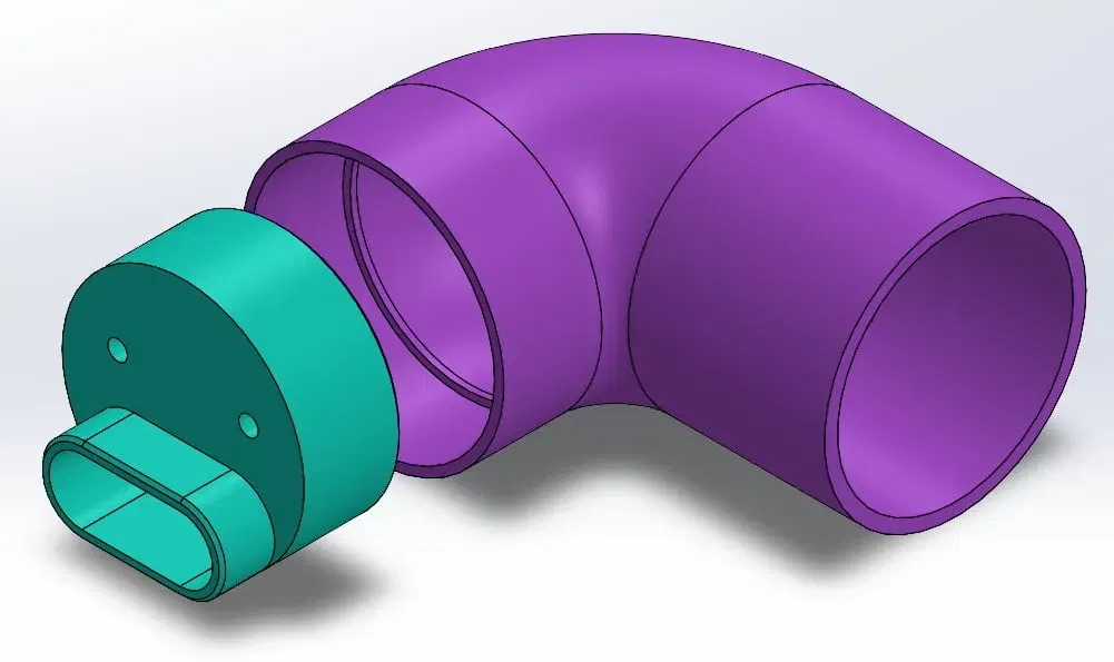 Bộ chuyển đổi khuỷu tay giảm thiểu không gian cần thiết cho kết nối hút. Đường kính kết nối là 36 mm cho lỗ mở.