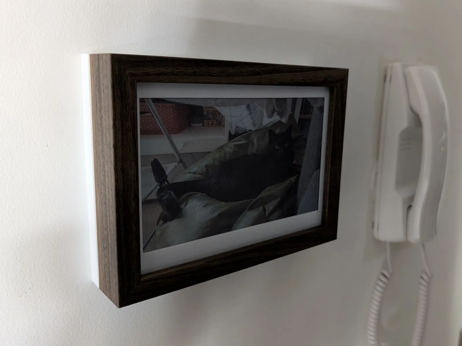 Bộ file thiết kế để lắp đặt màn hình Inky Impression 7 inch vào khung ảnh Ikea RÖDALM và gắn tường. Giải pháp tích hợp Raspberry Pi, hỗ trợ tháo lắp dễ dàng để sạc pin, đi kèm code tự động cập nhật hình ảnh tiện lợi.