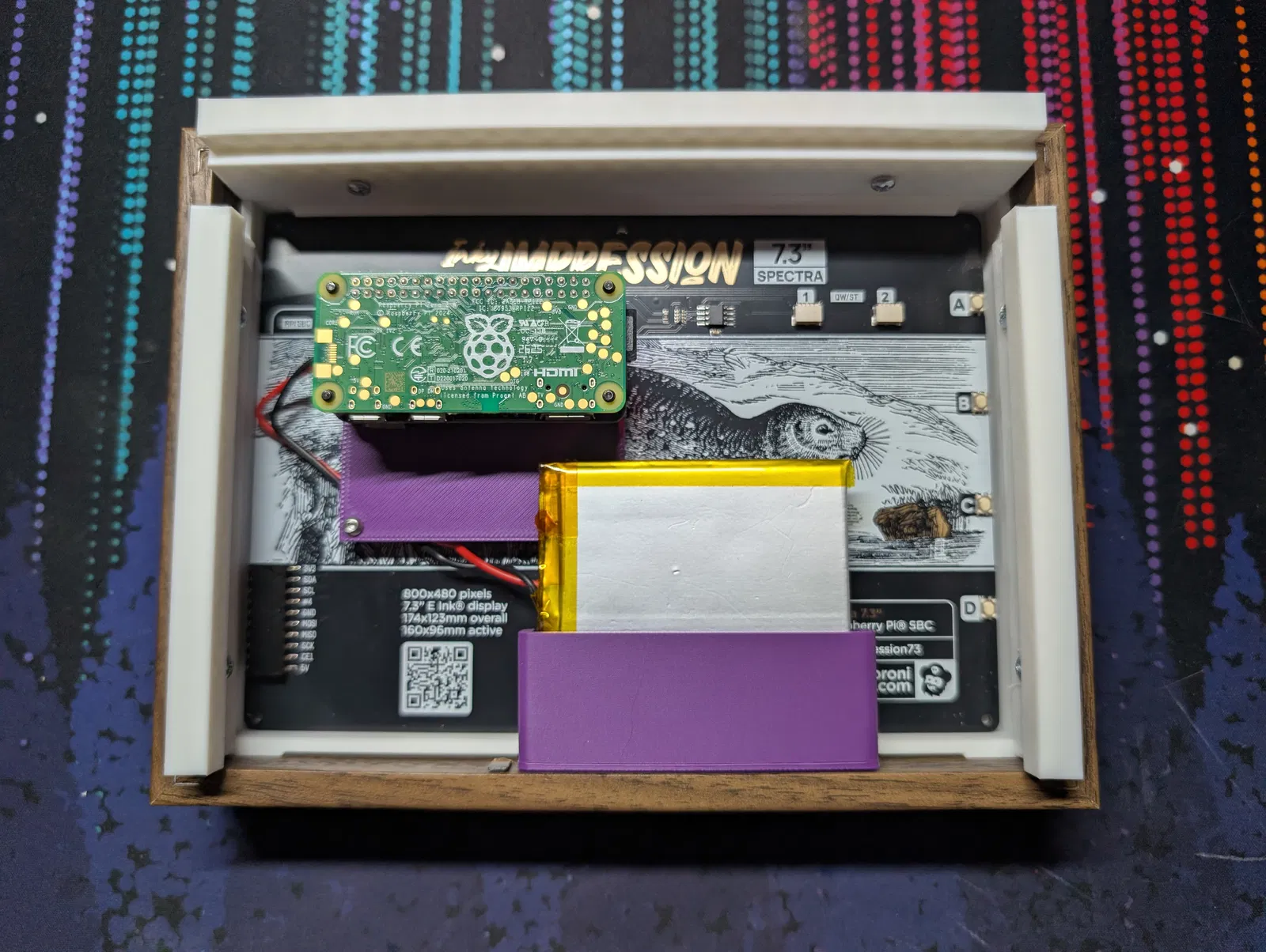 Mình cũng đã viết code để tự động cập nhật hình ảnh trên màn hình theo chu kỳ, giúp máy Pi tắt nguồn giữa các lần cập nhật để tiết kiệm pin. Bạn có thể tìm thấy code trên GitHub kèm hướng dẫn cài đặt tại đây: