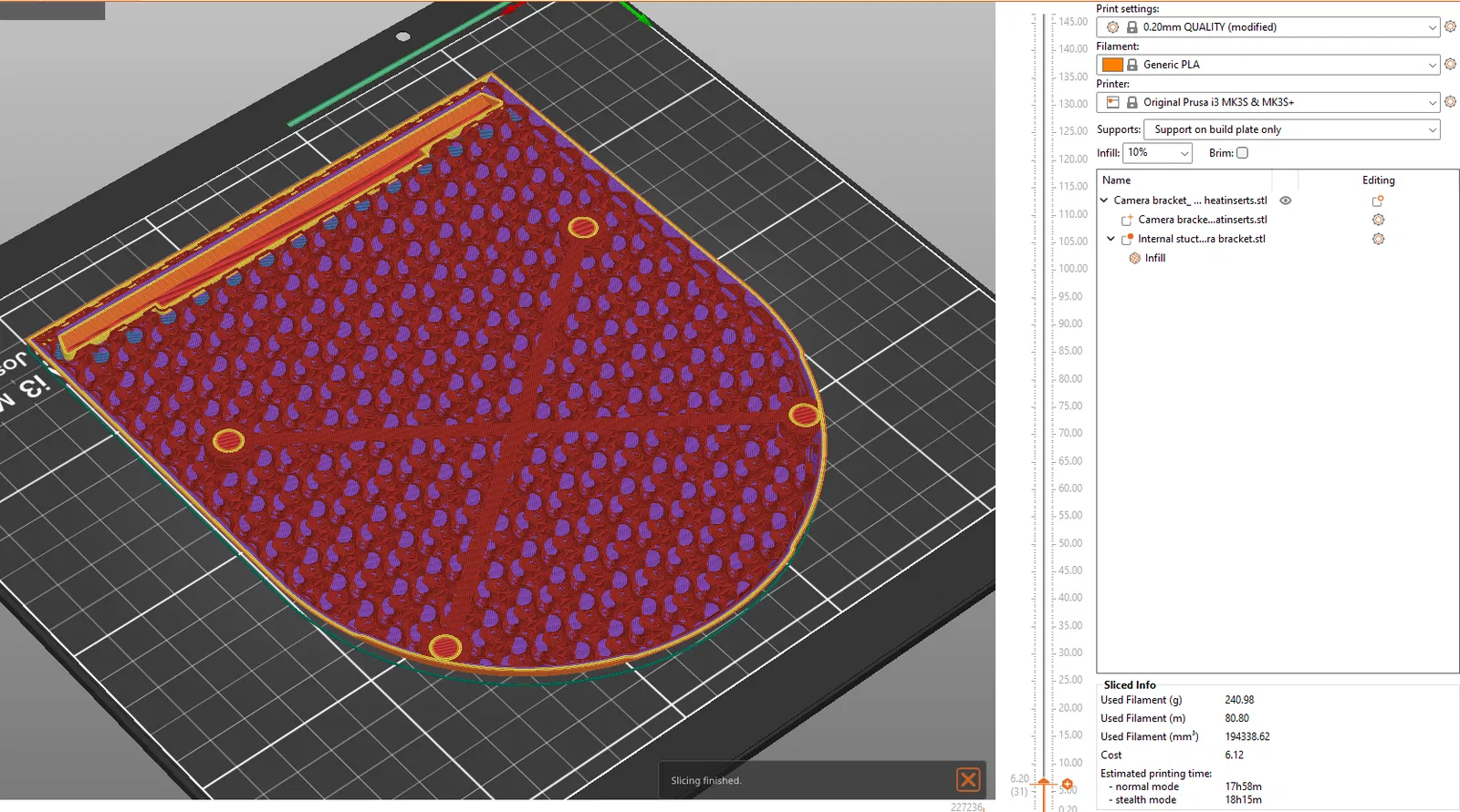 - Độ dày in (infill): Nên thiết lập infill từ 10-20% cho phần thân giá, nhưng riêng phần cấu trúc nội bộ (internal structure) cần để 100% infill để tăng tối đa khả năng chịu lực.