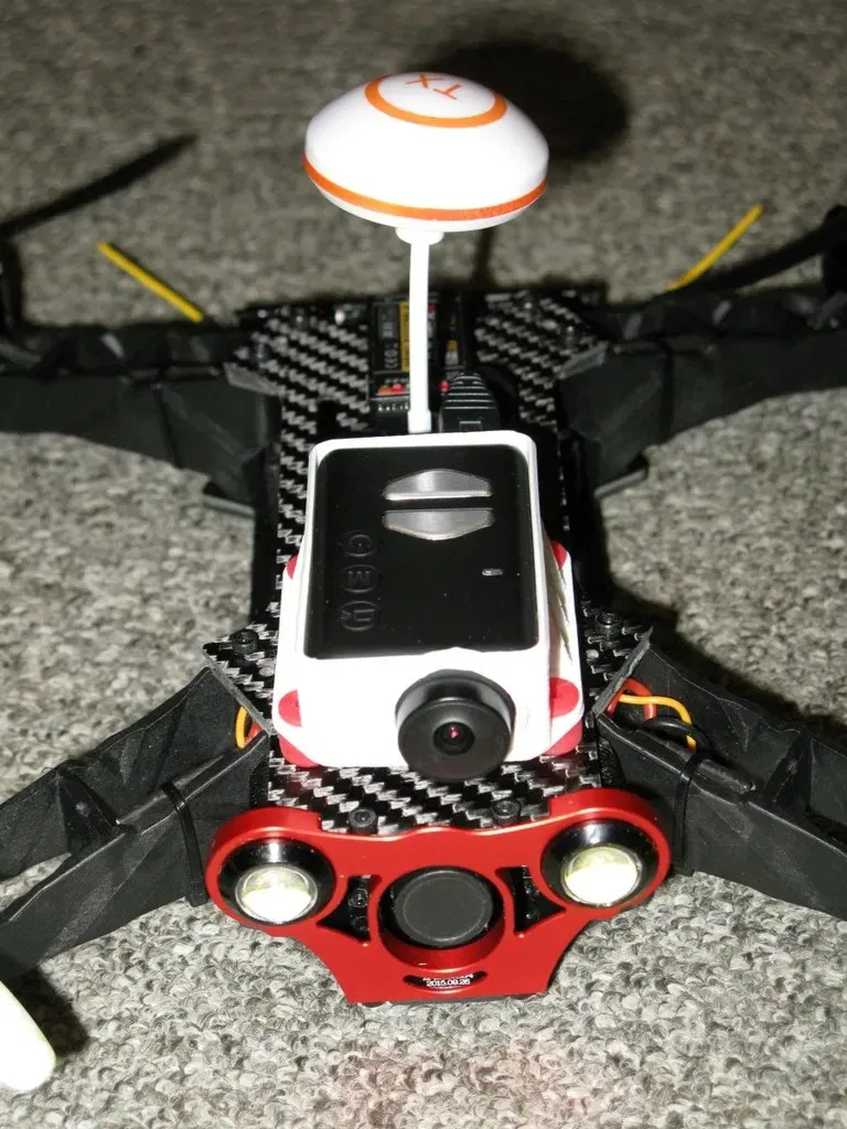 Trên mỗi chiếc xe đua 250 Eachine, chỉ cần thay thế tấm carbon từ cao su giảm chấn bằng giá đỡ mobius này. Tôi cố định camera bằng phích cắm USB, cái cũng cung cấp 5V cho MOBIUS, nhưng nó cũng có thể được cố định bằng một dây cao su ở giữa vỏ.
