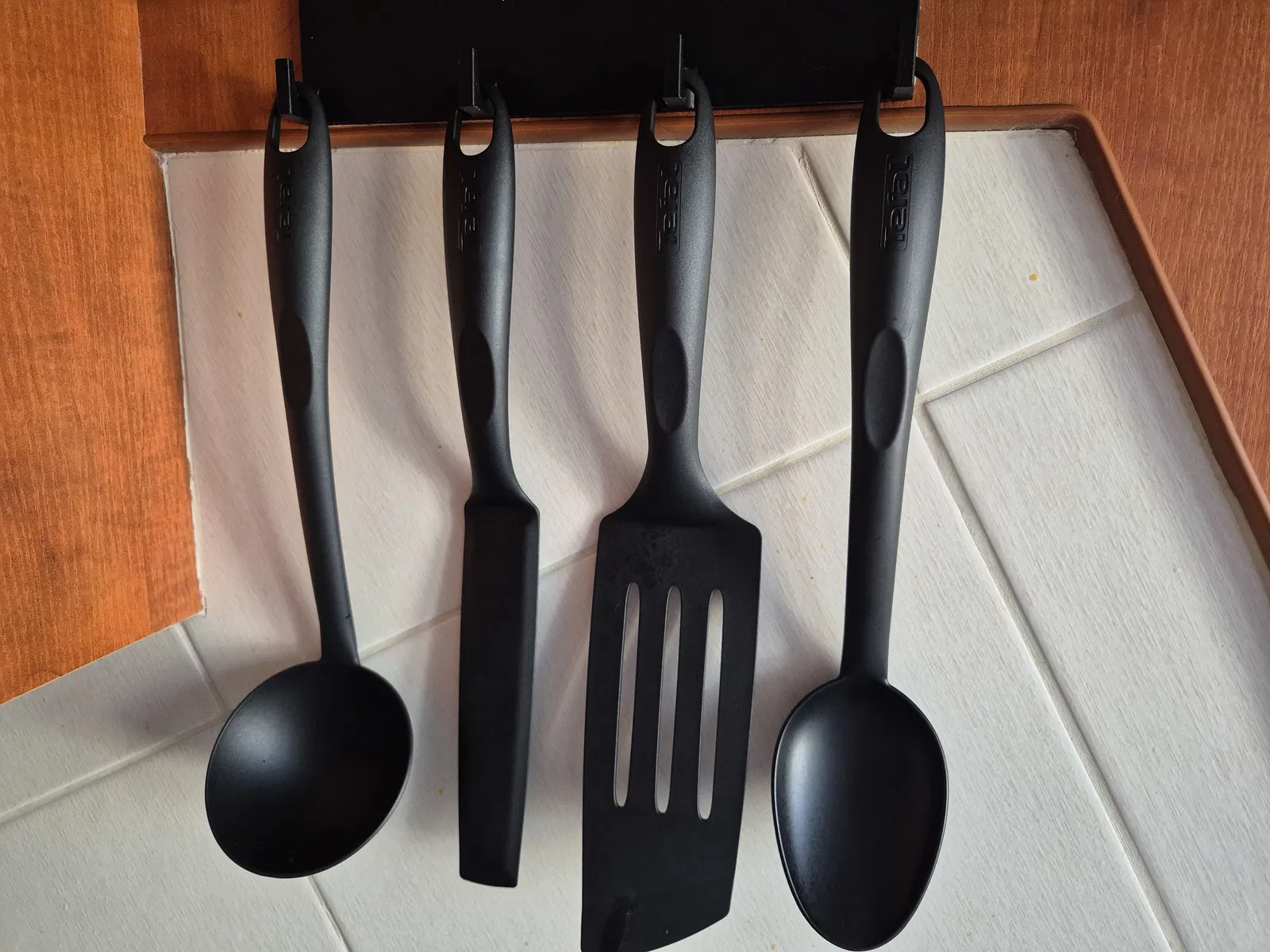 4 móc treo chắc chắn: Rất thích hợp để treo vá, xẻng nấu ăn, cây đánh trứng hoặc khăn lau bếp.