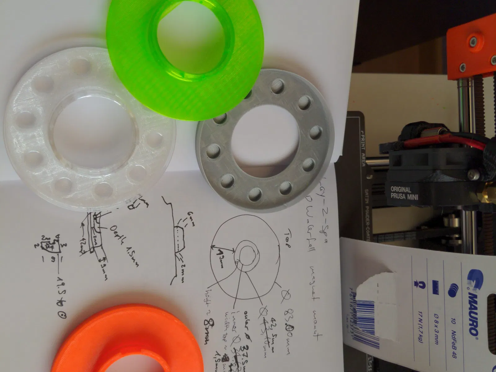 Tôi đã sử dụng 10 nam châm MAURO NdFeB 48 (8x3 mm) từ Hornbach.