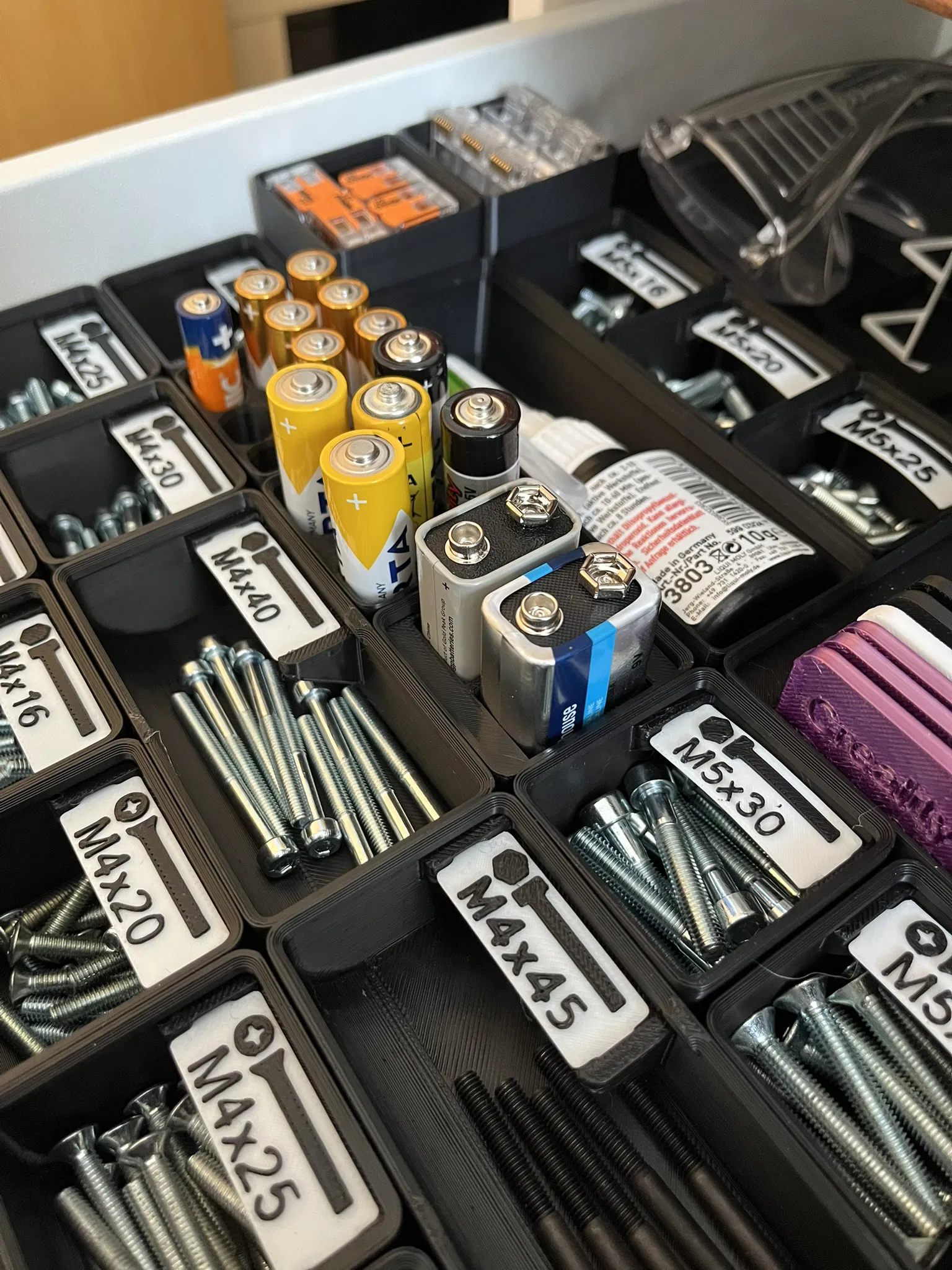 Mẫu khay Gridfinity 1x1x4U nhỏ gọn giúp bạn sắp xếp ngăn nắp 2 viên pin 9V ngay trong hệ thống lưu trữ của mình. Thiết kế đơn giản, dễ in và tương thích tốt với các phụ kiện Gridfinity khác.
