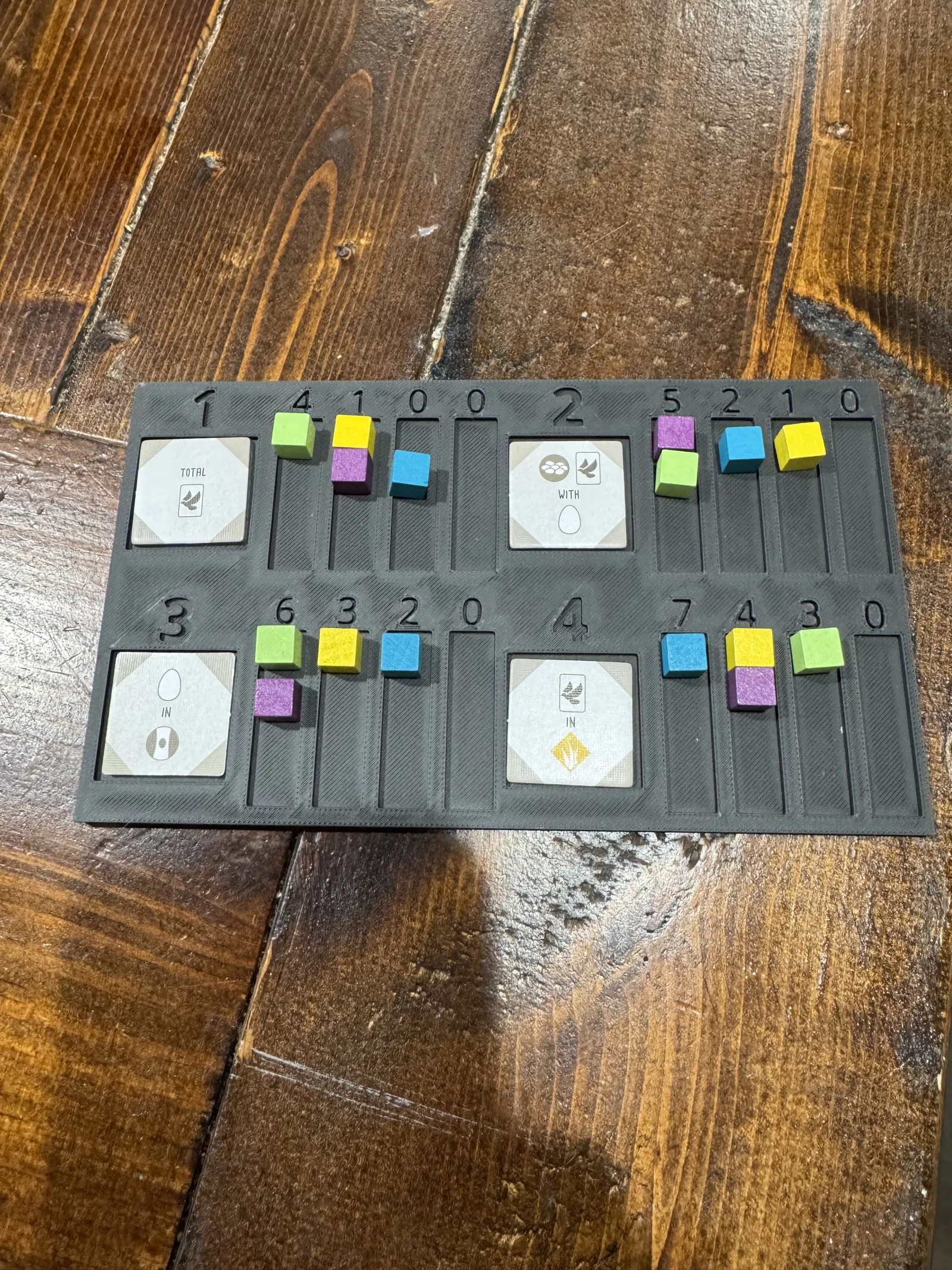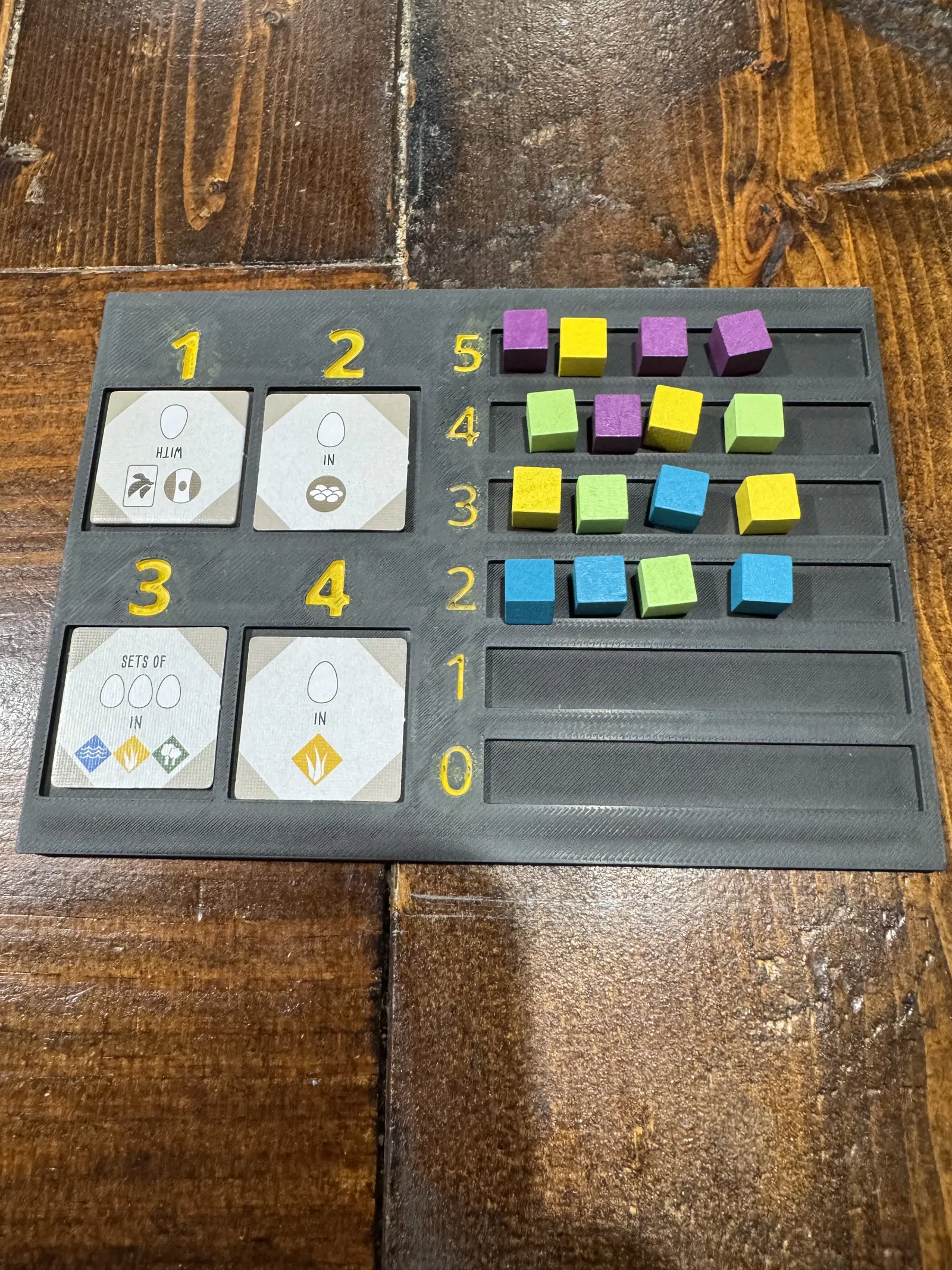 Mình mới bắt đầu chơi Wingspan gần đây và cảm thấy cực kỳ thích thú. Mình rất kết các mẫu khay lưu trữ của Carson Miller, nhưng hiện tại chưa sẵn sàng để in toàn bộ đống đó. Mình đã mê mẩn các nắp hộp tính điểm cho chế độ competitive và non-competitive, nên quyết định remix lại để có thể in rời từng cái trên chiếc A1 Mini của mình.