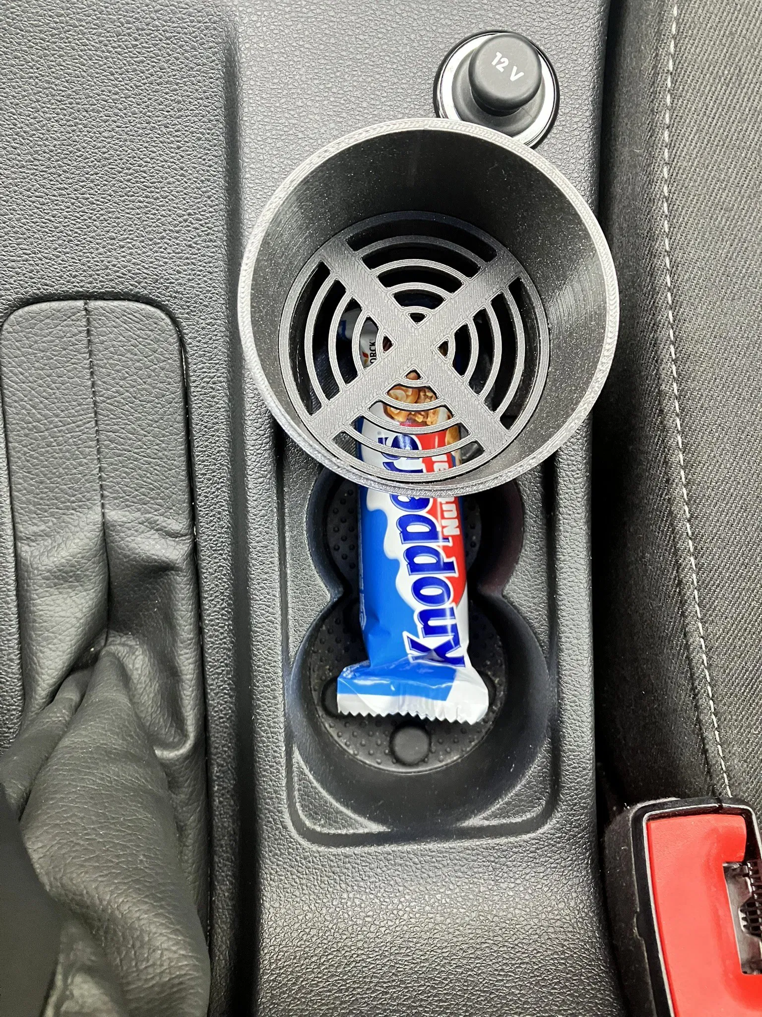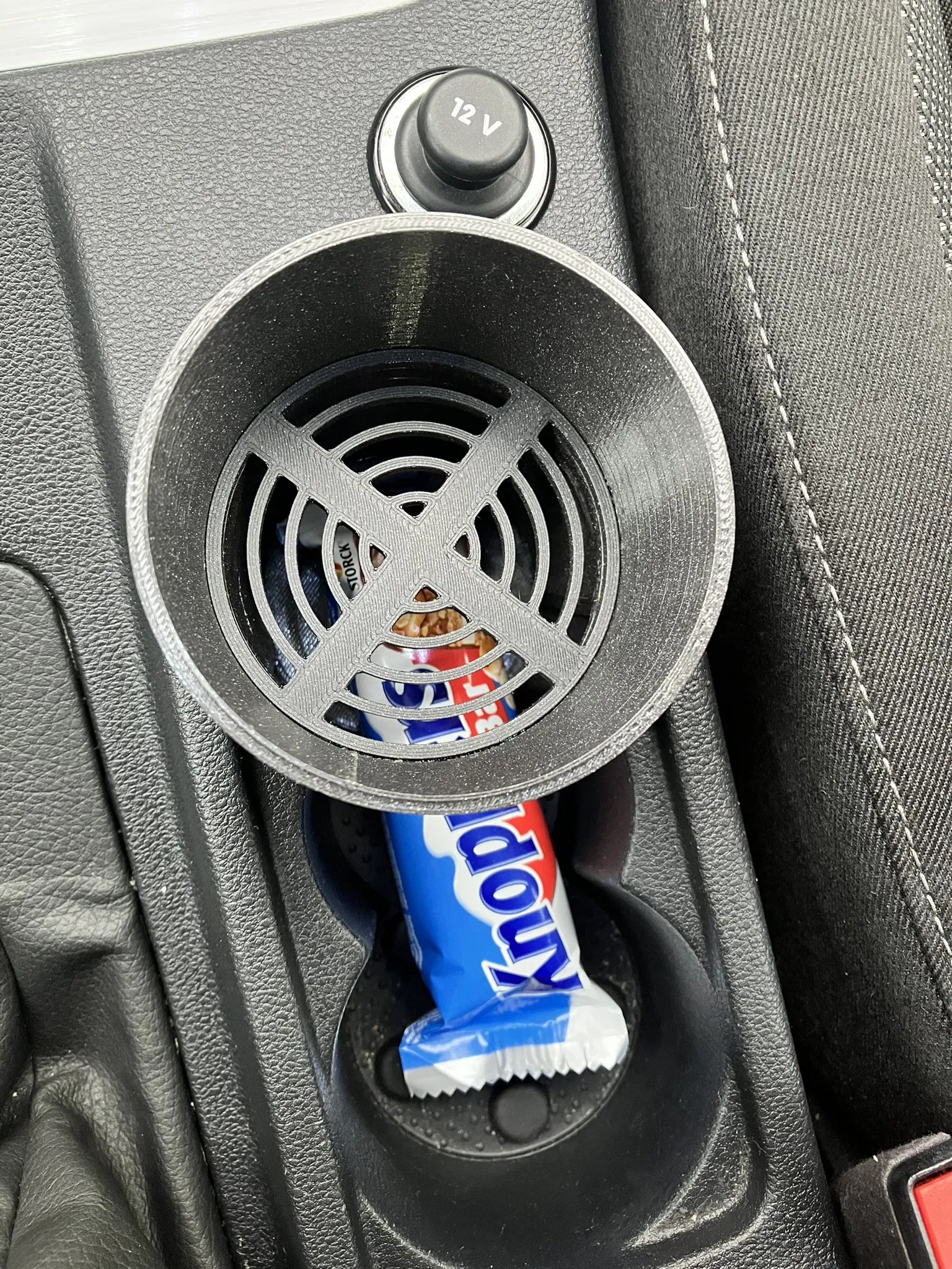 Cần tương thích với hốc để ly lớn hơn? Bạn có thể in thêm các khớp nối mở rộng (snap-on adapters) để gắn vào phần đế, giúp khay vừa vặn với nhiều loại hốc đựng ly khác nhau.