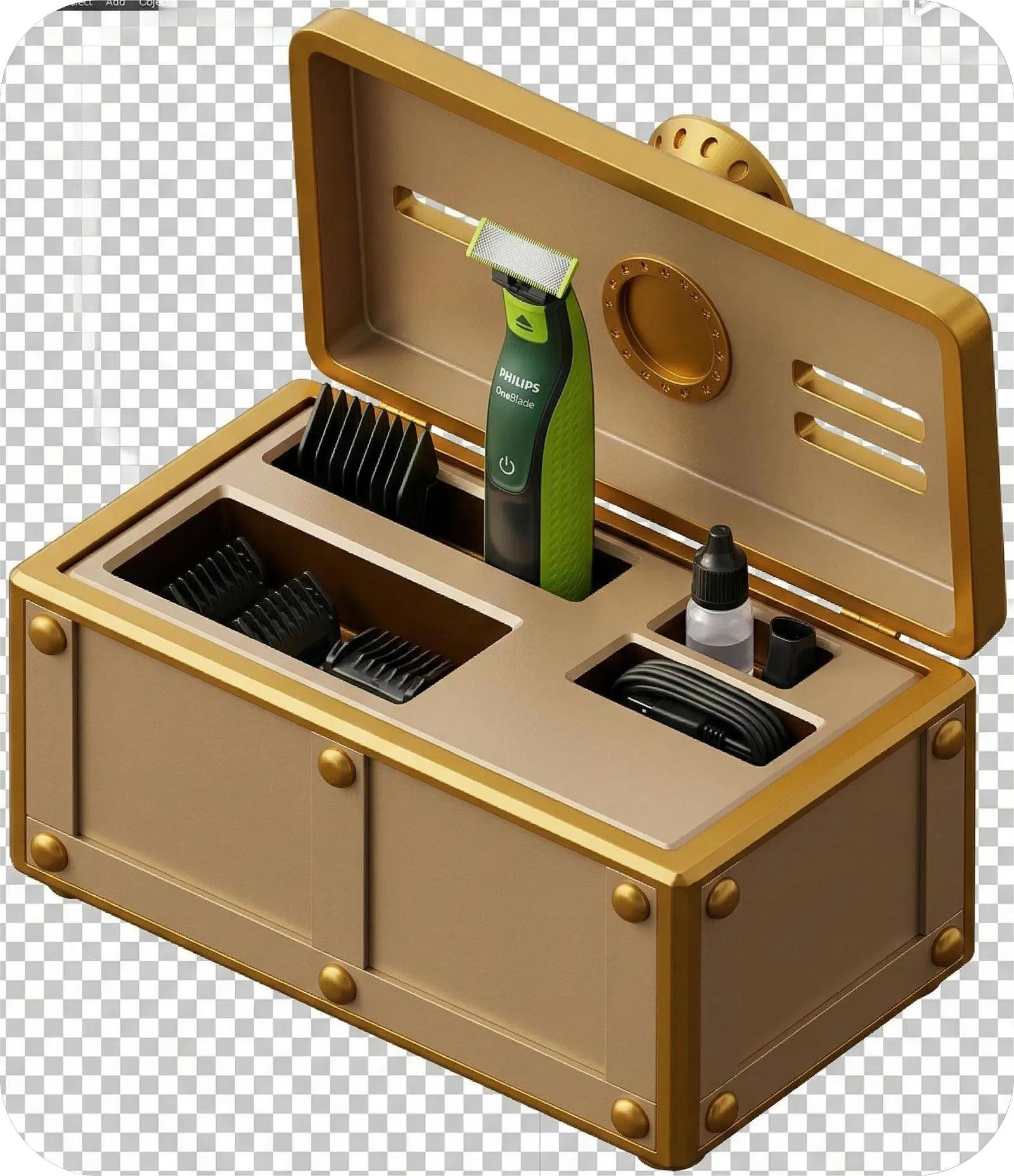 Bạn đang sở hữu một chiếc máy cạo râu Philips OneBlade 360 hiện đại nhưng lại đau đầu vì phụ kiện, đầu tỉa và dây sạc cứ bị thất lạc mỗi nơi một chỗ? Mẫu thiết kế hộp đựng (case) được thiết kế riêng cho dòng máy này chính là giải pháp hoàn hảo để giúp không gian phòng tắm hay bàn trang điểm của bạn trở nên ngăn nắp, gọn gàng hơn bao giờ hết. Hộp đựng được thiết kế với các ngăn chia khoa học, giúp cố định chắc chắn thân máy cùng toàn bộ các phụ kiện đi kèm như lược tỉa, dây cáp sạc và cả lọ dầu bôi trơn.