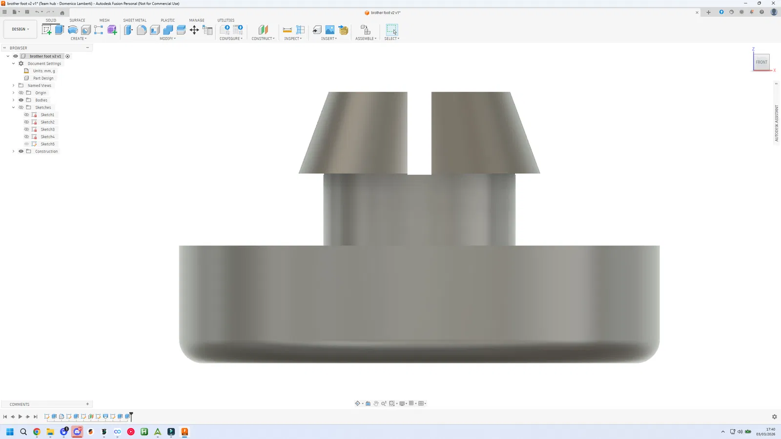 Mẹ mình bị mất một miếng đệm chân máy khâu, thế là mình tự thiết kế lại và in một cái mới. Chia sẻ file thiết kế cho mọi người dùng máy Brother L14 nếu cần thay thế.