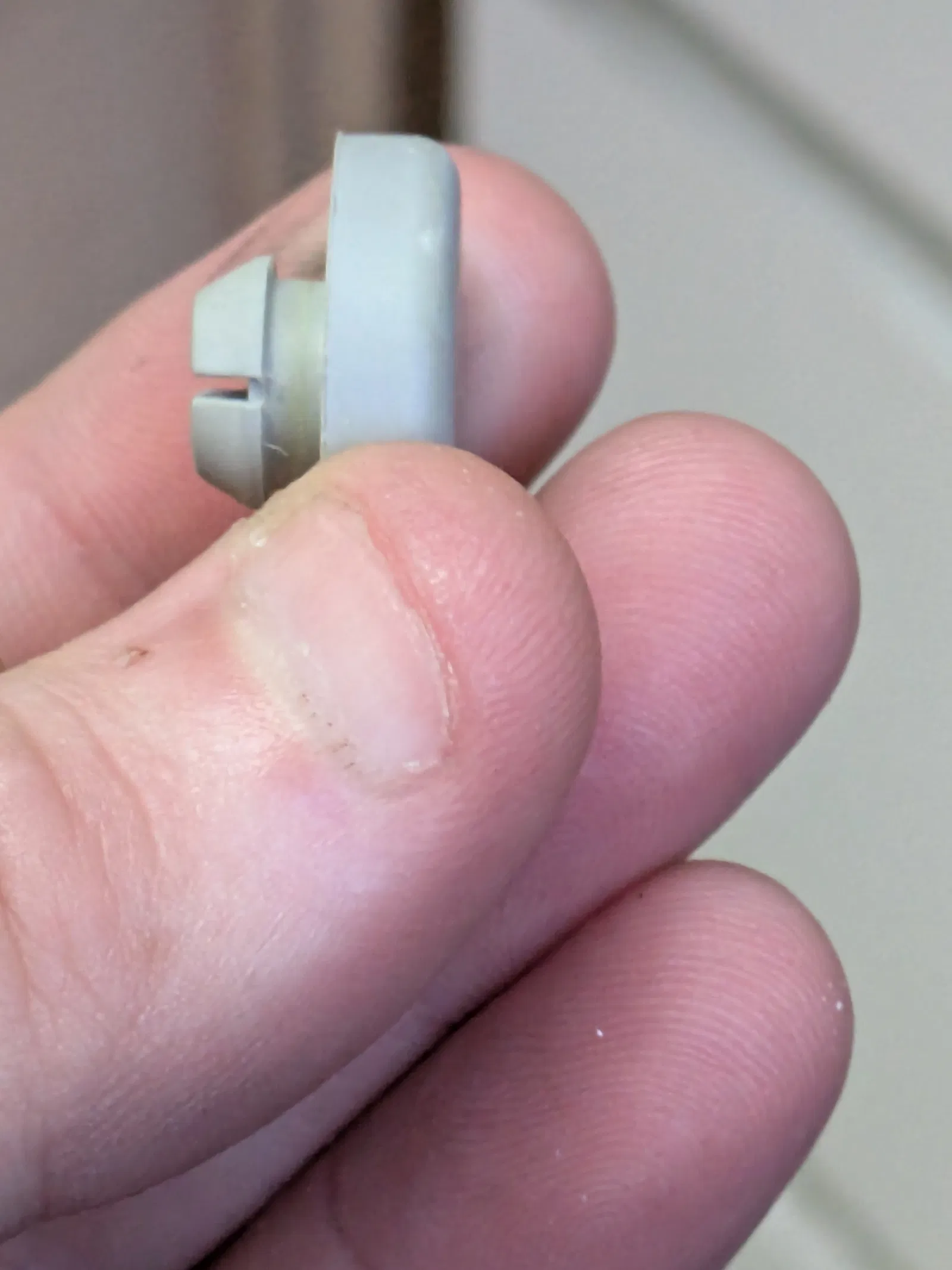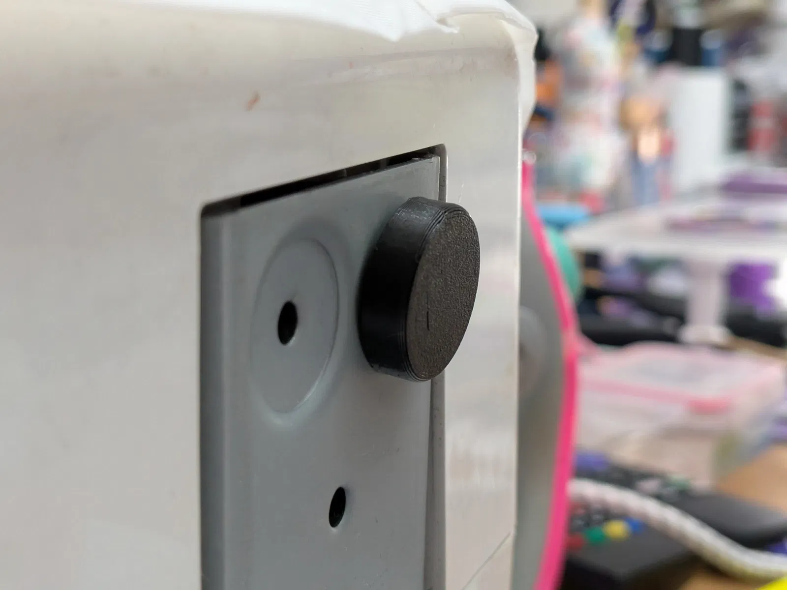 Mẹ mình đang định bán chiếc máy khâu thì phát hiện một miếng đệm cao su đã bị mủn. Cao su theo thời gian bị lão hóa là chuyện bình thường mà, nên mẹ nhờ mình in thử cái mới xem sao. Mình có tìm trên mạng nhưng không thấy mẫu nào ưng ý, thế là mất 10 phút hí hoáy trên Fusion 360 để thiết kế, rồi thêm 10 phút in nữa là xong, lắp vừa khít vào máy luôn.