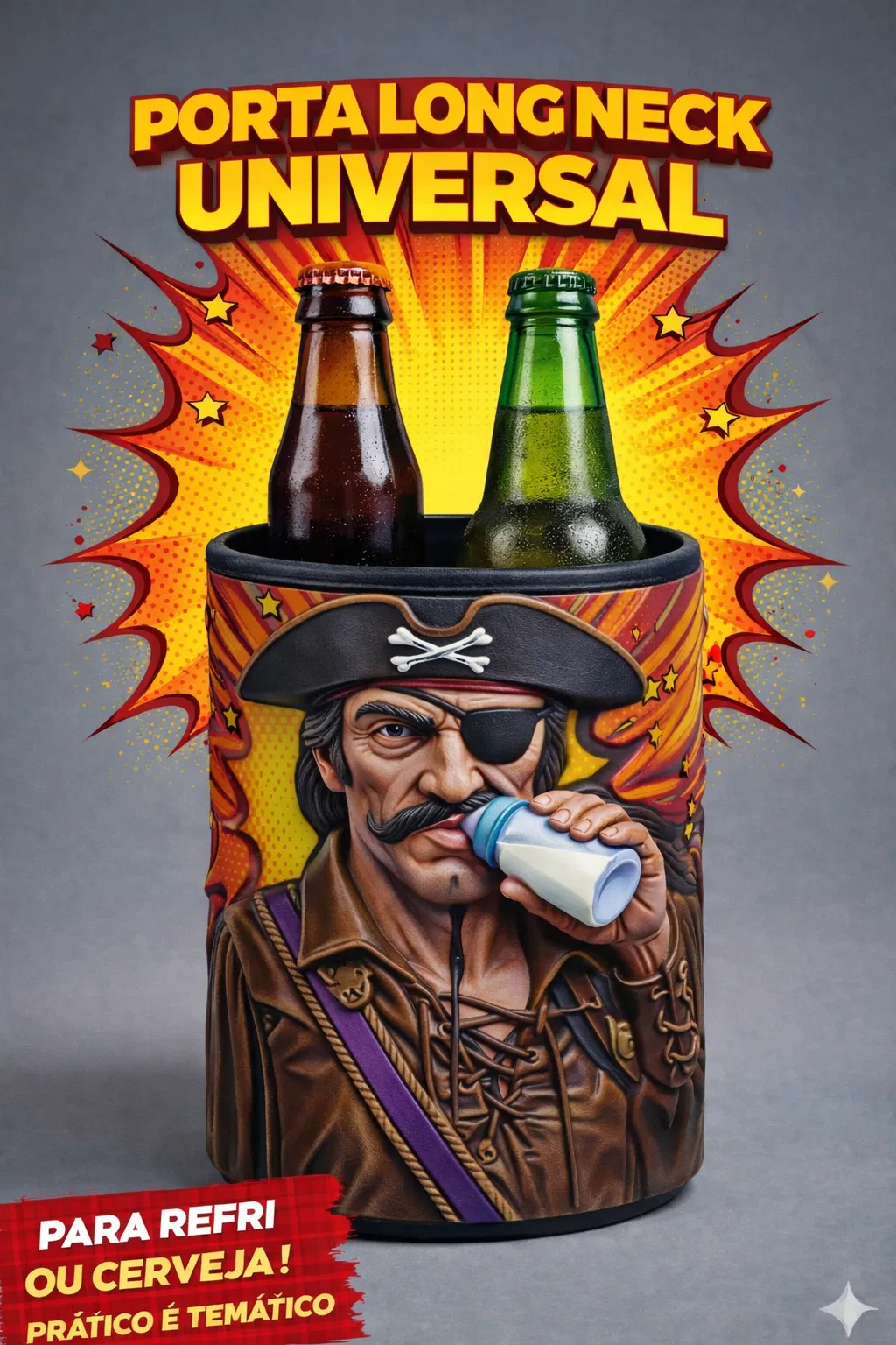 Mang cá tính và phong cách đến không gian giải trí của bạn với Giá đỡ chai Long Neck Universal – Pirata Guardião. Thiết kế độc đáo, chắc chắn, phù hợp cho tiệc BBQ, quầy bar hoặc làm quà tặng sáng tạo.