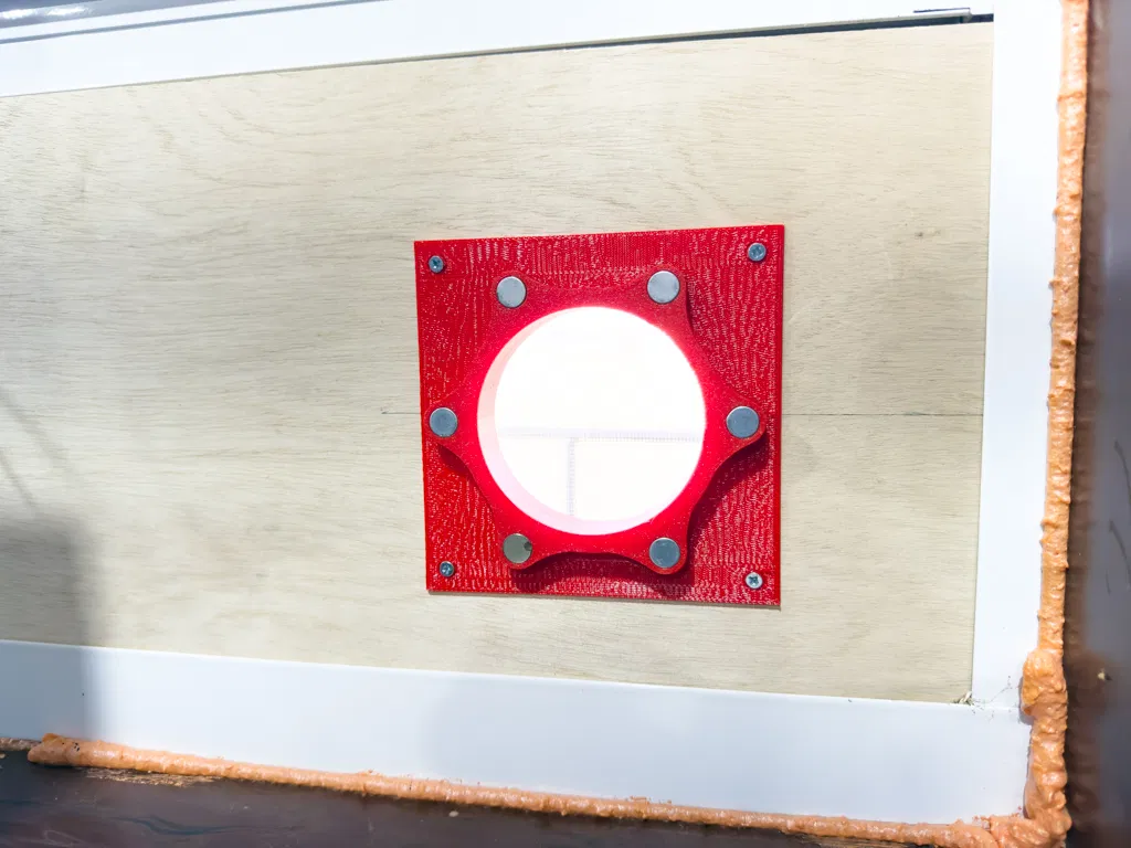 Đây là ống thông gió cửa sổ giúp dẫn khói ra ngoài qua một lỗ thoát. Cổng thông gió này kết nối với ống dẫn 3 inch bằng cơ chế hít nam châm.