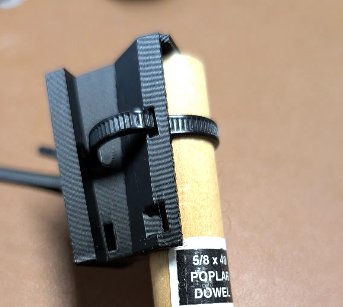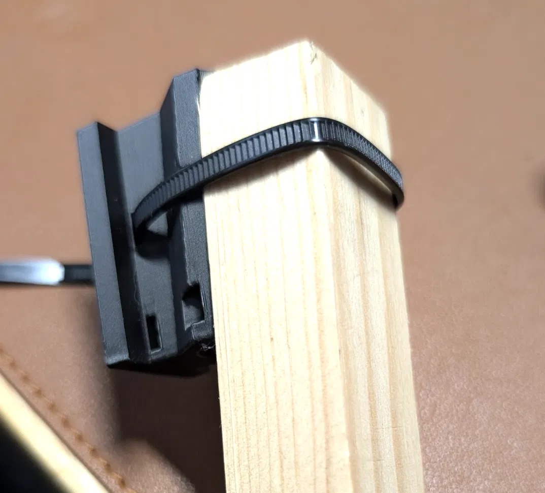 Ngoài ra, còn có tùy chọn ngàm gắn lên thanh tròn (dowel) và thanh dẹt. Đối với các loại thanh này, bạn hãy xem hình ảnh hướng dẫn sử dụng dây rút. Với thanh có kích thước lớn, hãy dùng các lỗ gần phần đế, còn với thanh nhỏ hơn, bạn có thể dùng các khe phụ để đảm bảo độ chắc chắn.