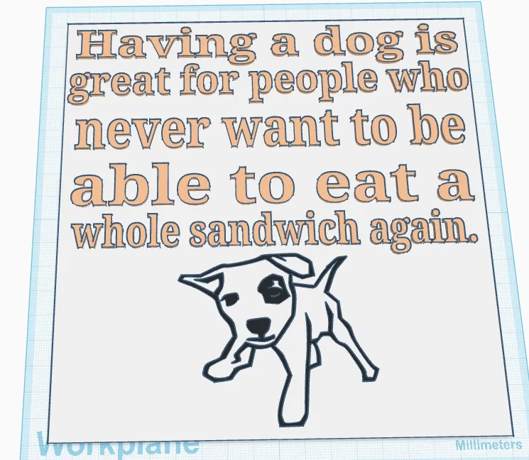 Bạn đang tìm kiếm một vật trang trí độc đáo để thể hiện tình yêu với chú cún cưng của mình? Mẫu in 3D 'Having a Dog & Eating Sign' chính là lựa chọn hoàn hảo. Với nội dung hài hước về việc khó khăn khi giữ trọn vẹn chiếc bánh sandwich trước một chú chó ham ăn, sản phẩm này chắc chắn sẽ làm bạn mỉm cười mỗi khi nhìn thấy. Được thiết kế tối ưu cho in 3D trên nền tảng Tinkercad, mô hình này dễ dàng in ấn bằng nhựa PLA thông dụng. Đây không chỉ là món đồ decor thú vị cho ngôi nhà của bạn mà còn là món quà ý nghĩa dành tặng những người bạn cũng đang nuôi thú cưng. Hãy tải file STL và mang lại điểm nhấn vui vẻ cho không gian sống của bạn ngay hôm nay.