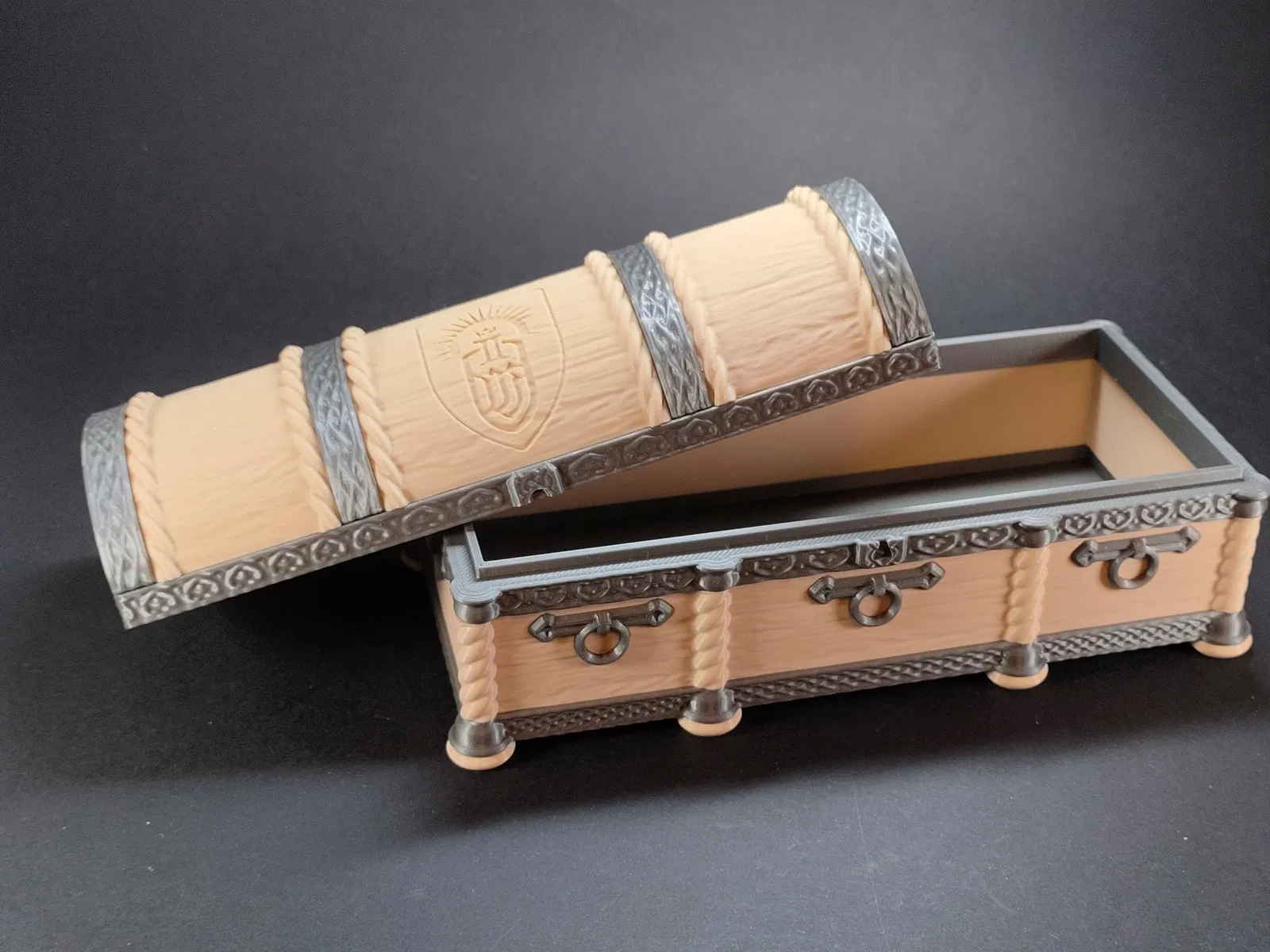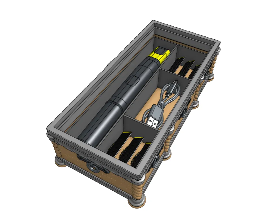 Khám phá mẫu rương báu phong cách trung cổ độc đáo dùng làm hộp đựng Philips OneBlade hoặc trang sức. Thiết kế tối ưu, in ấn dễ dàng không cần support, mang lại vẻ ngoài ấn tượng cho góc làm việc của bạn.
