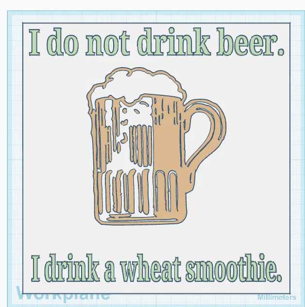 Bạn đang tìm kiếm một món đồ trang trí thú vị và mang tính giải trí cao cho căn bếp, quầy bar tại gia hay khu vực giải trí riêng? Mẫu thiết kế "Wheat Smoothie Sign" (Biển báo ly bia lúa mì) này chính là lựa chọn hoàn hảo dành cho bạn. Được tạo hình thông qua phần mềm Tinkercad, đây là một tấm biển mang phong cách hài hước với dòng chữ "I do not drink beer, I drink a wheat smoothie" (Tạm dịch: Tôi không uống bia, tôi chỉ uống sinh tố lúa mì thôi). Đây là cách nói đùa rất duyên dáng dành cho những ai yêu thích đồ uống lên men từ lúa mì nhưng vẫn muốn tạo một nét chấm phá tinh nghịch trong các cuộc trò chuyện.