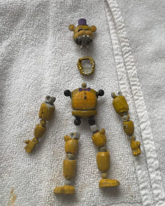 • Sáng tạo: Bạn có thể sử dụng thêm các loại sơn acrylic hoặc màu mô hình chuyên dụng để tạo hiệu ứng cũ kỹ, rỉ sét cho Withered Freddy thêm phần sống động.