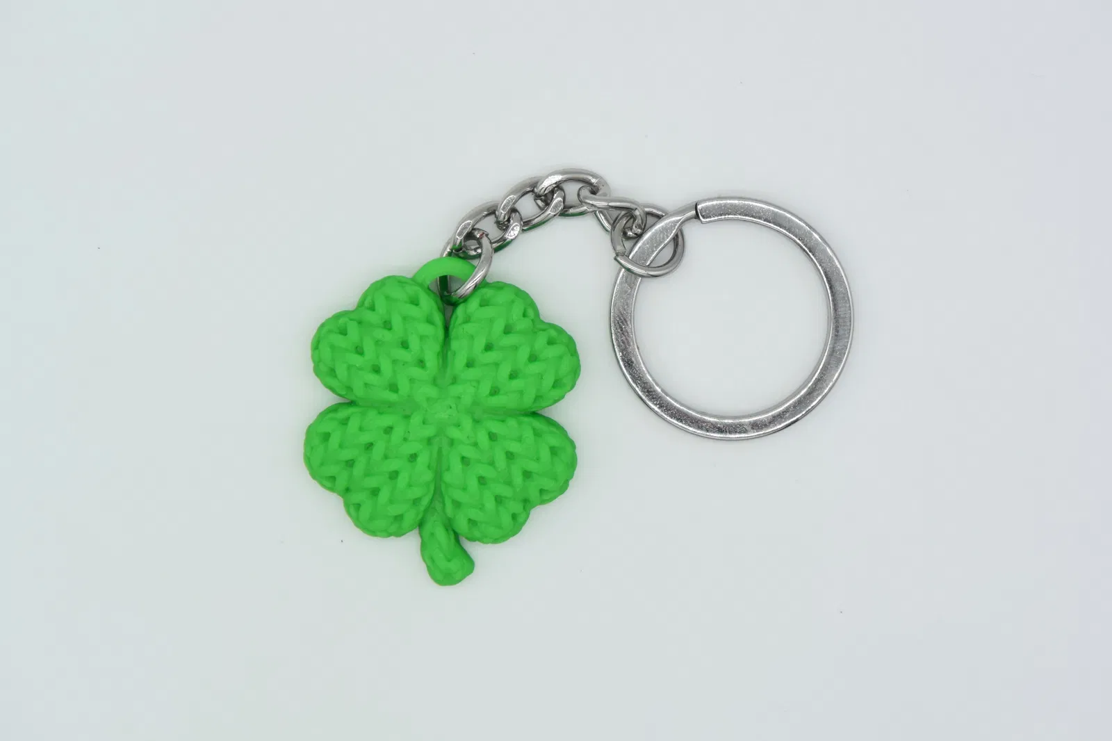 Móc khóa cỏ bốn lá đan len may mắn - File in 3D