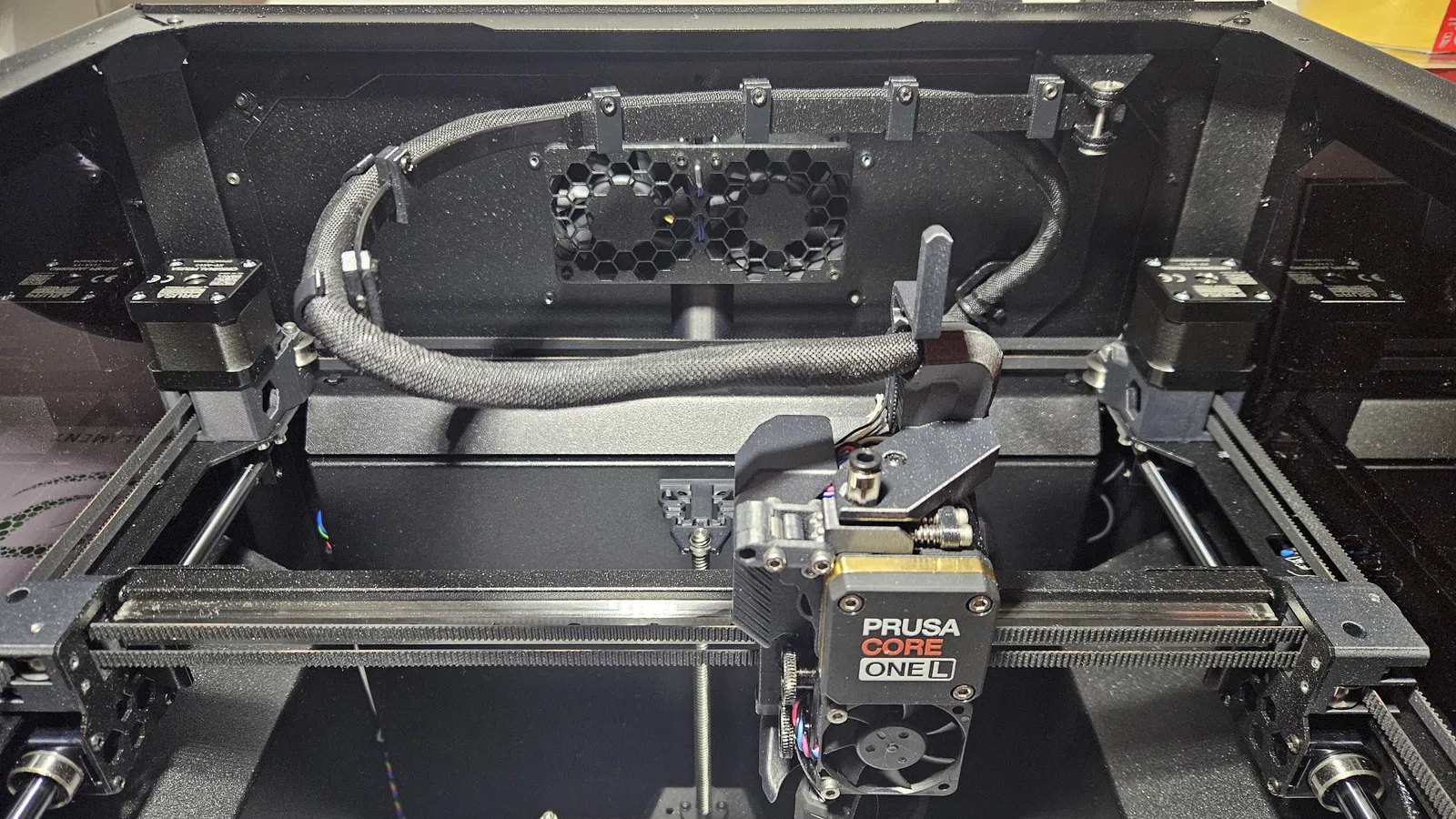 Vì bó dây Extruder trên máy CORE One L đã có hiện tượng bị võng, mình nghĩ nó sẽ cần được gia cố thêm khi nâng cấp lên MMU3 / INDX. (Nhiều anh em báo cáo rằng bó dây này hay bị kẹt vào quạt phía sau).