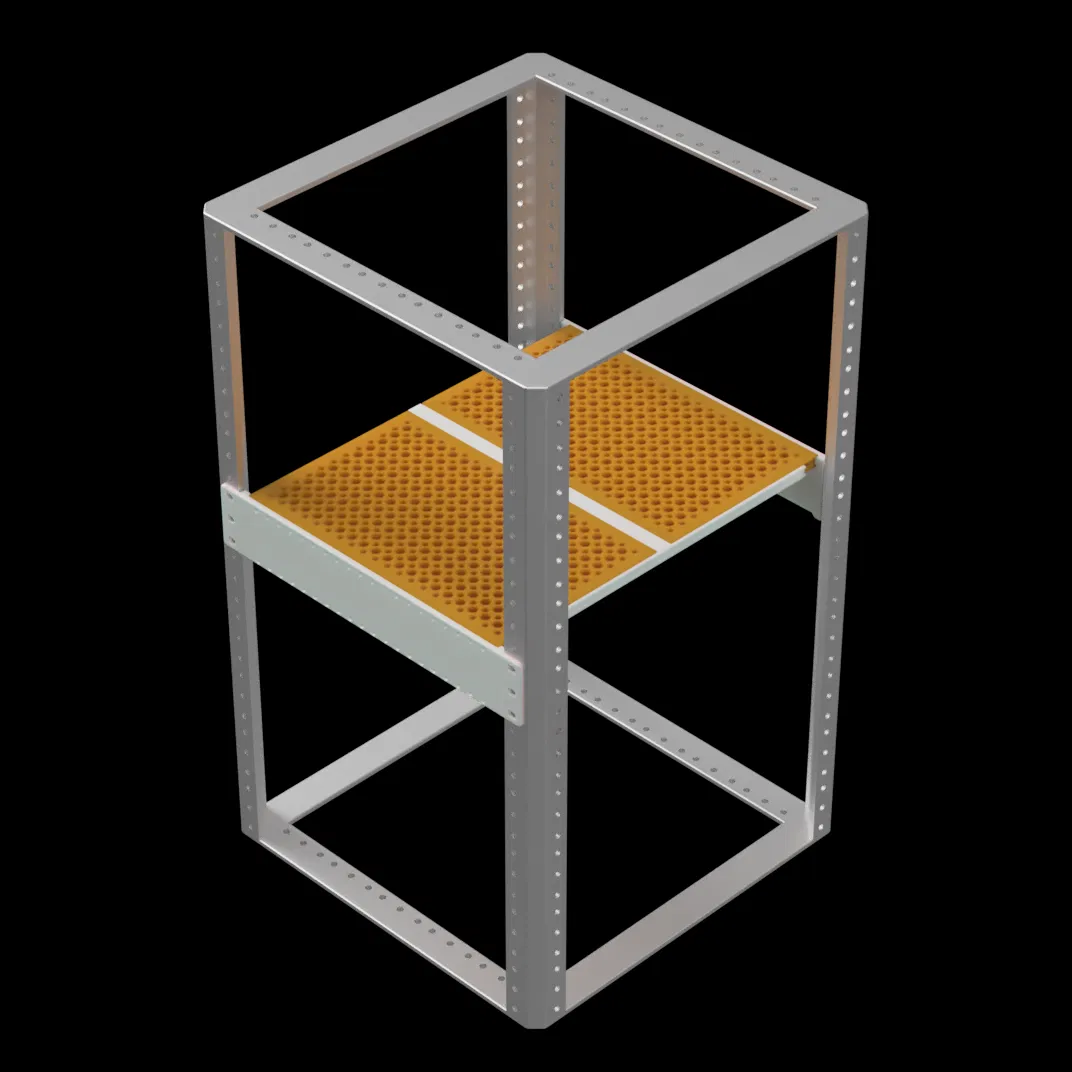 - Các thanh ray âm bao quanh toàn bộ kệ, giúp kệ có thể khớp với các thanh ray dương ở bất kỳ cạnh nào trong 4 cạnh.