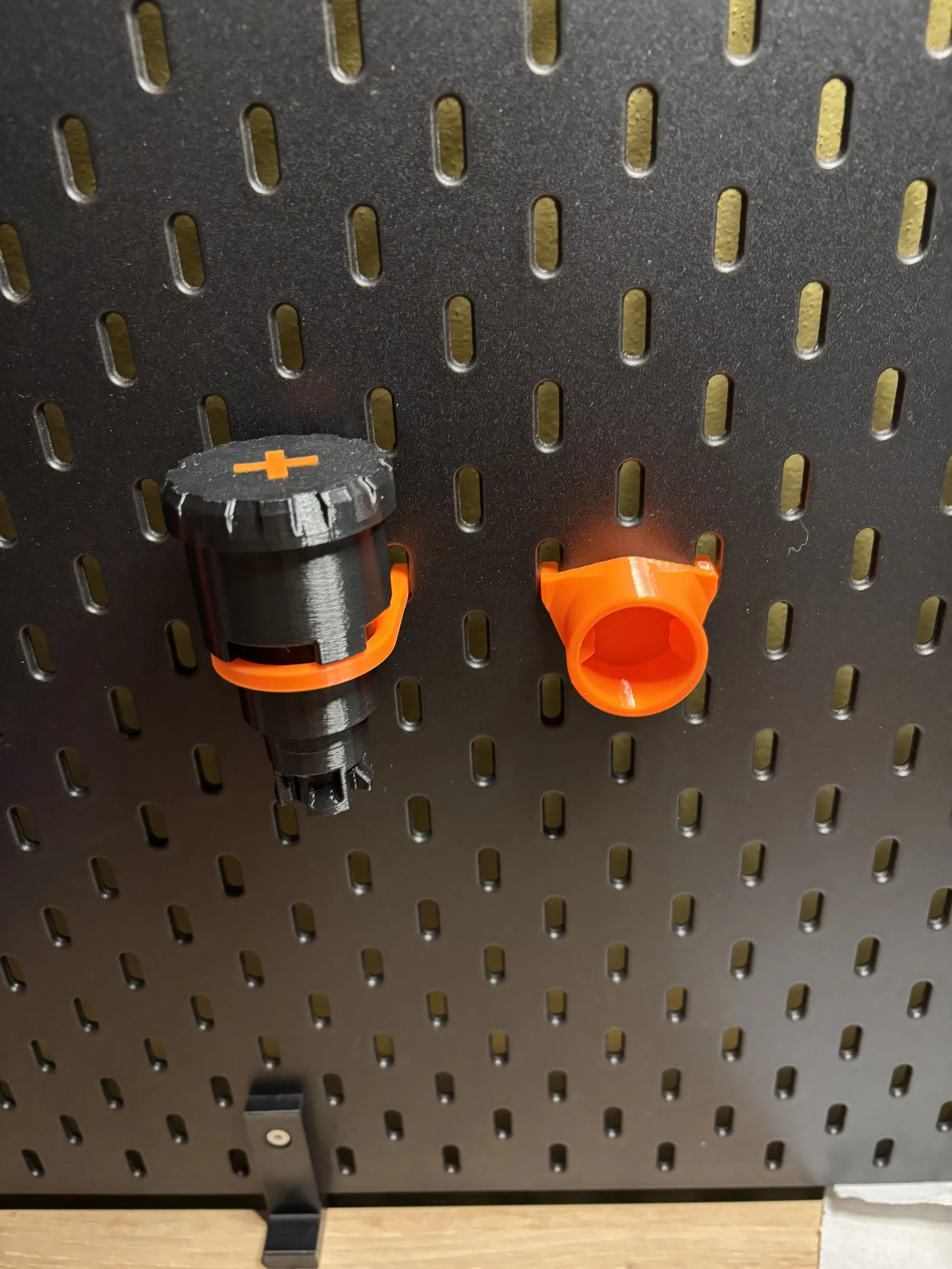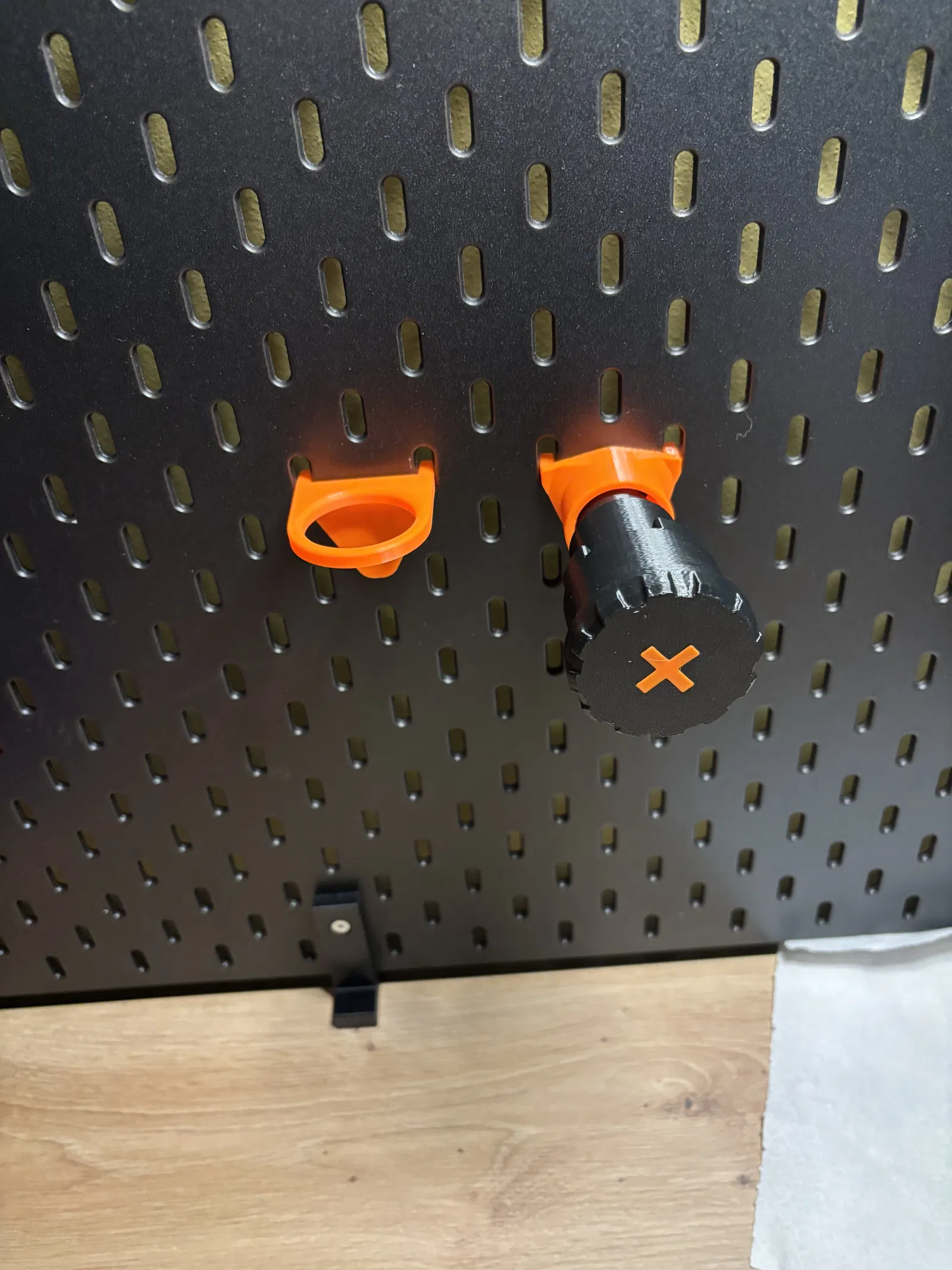 Vì mình vừa in thêm một cái giá đỡ cuộn nhựa (spoolholder) để dùng cho các cuộn nhựa kích thước lớn, nên cái giá dư ra cứ để bừa bãi trên bàn mãi. Thế nên mình đã thiết kế 2 phiên bản này để treo lên bảng Skadis... một bản chỉ là lỗ xỏ đơn giản, bản còn lại thì dựa theo thiết kế của cái puck dùng trên máy in.