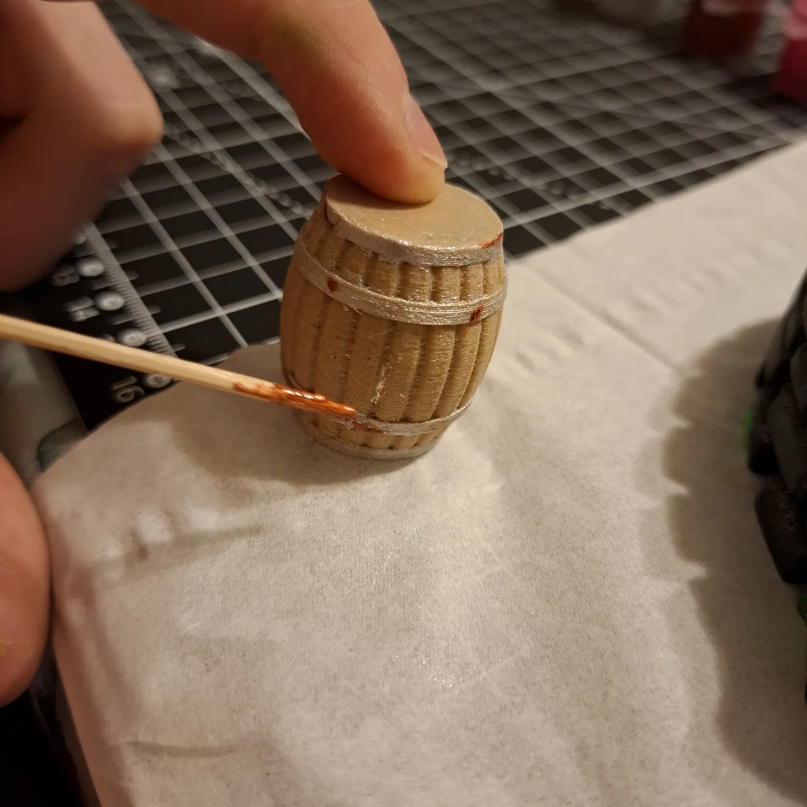 - Chất liệu: Stand, Kiếm, Mũ - Prusament Galaxy Black PLA rất hợp. Thùng gỗ - dùng Spectrum PLA Woodfill.