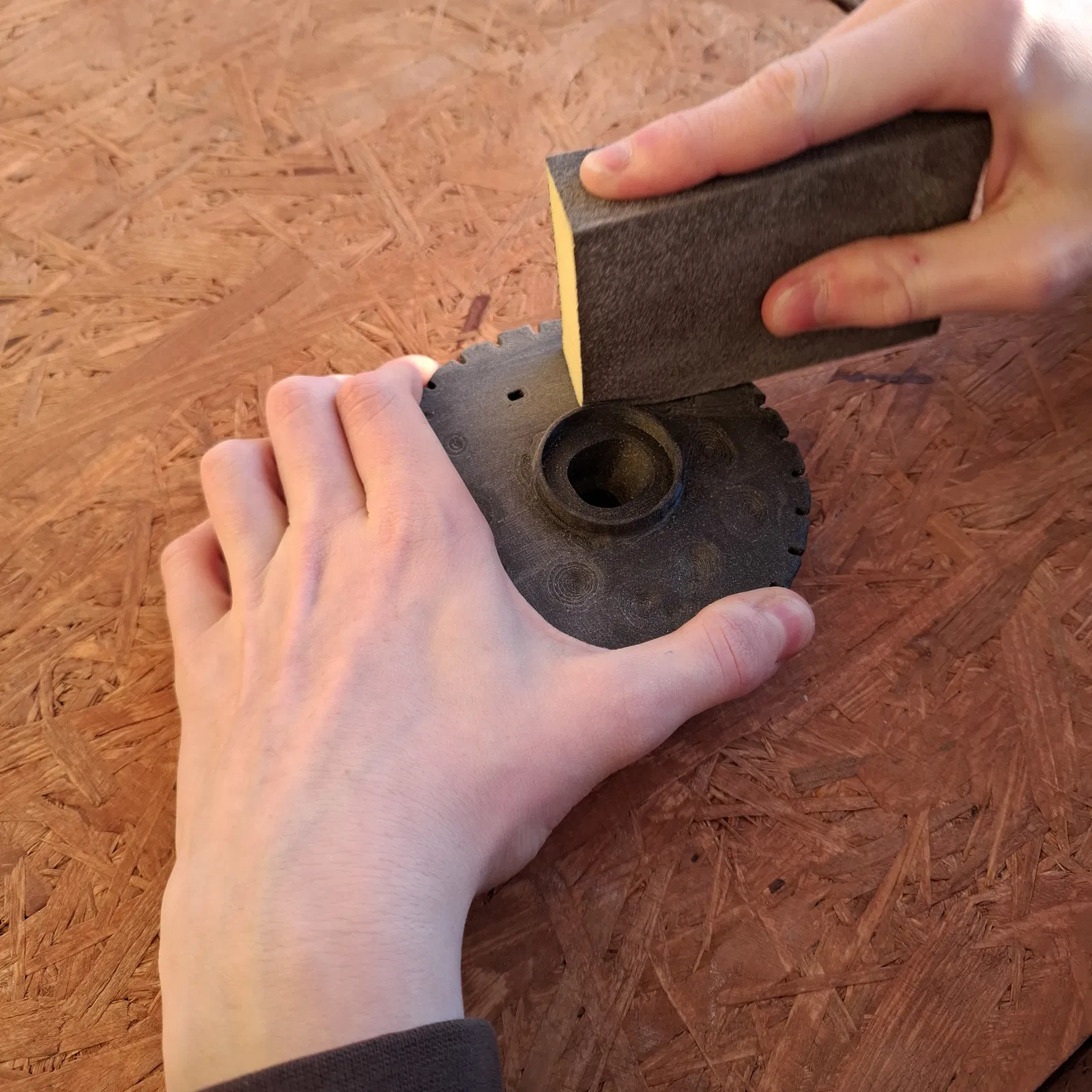 - Chuẩn bị: Cháu dùng giấy nhám và bột bả để mọi bề mặt trở nên mịn màng.