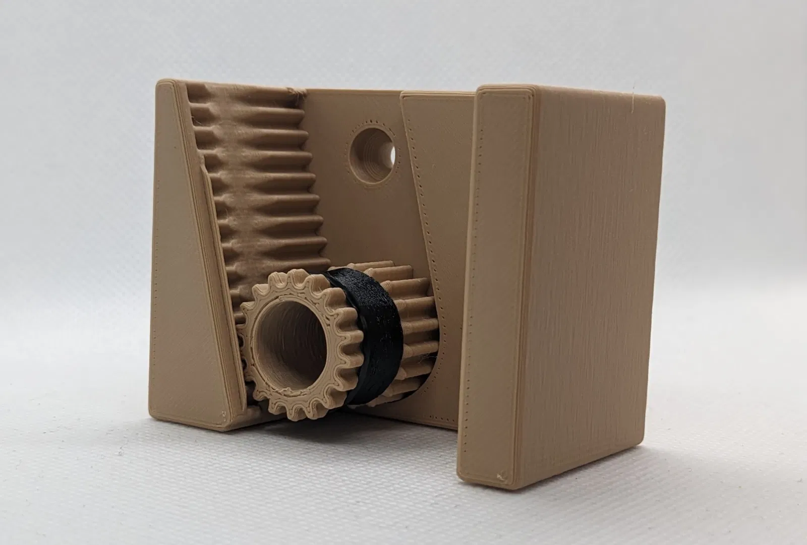 Giá đỡ chổi trọng lực là một bản in tuyệt vời, nhưng hầu hết mọi người chỉ thêm một dây chun để giảm thiểu việc cán chổi bị trượt. Chắc chắn nó có chức năng, nhưng tôi nghĩ rằng điều đó thực sự làm giảm vẻ đẹp của bản in. Vì vậy, tôi đã tạo ra một hình trụ đơn giản mà tôi đã in bằng TPU vừa khít quanh bánh răng.