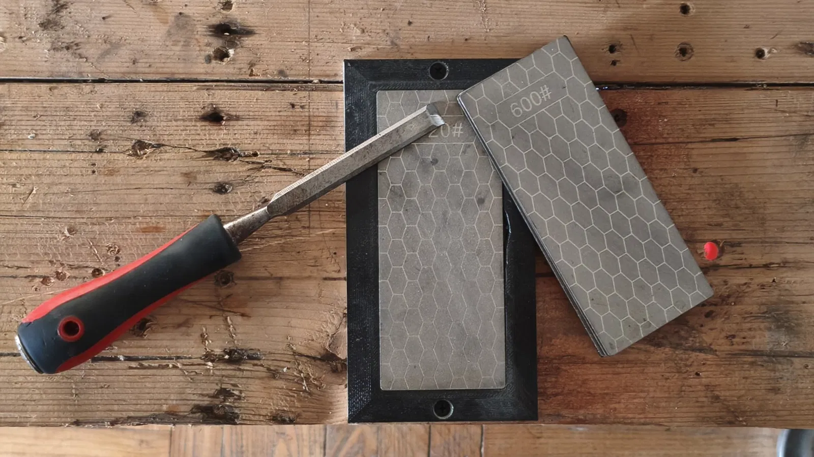 Mẫu thiết kế này được làm để bạn có thể bắt vít cố định trực tiếp vào bàn làm việc hoặc một miếng gỗ. Vì các tấm đá mài thường có độ dày khác nhau, nên bạn có thể cần điều chỉnh độ cao lắp đặt cho phù hợp.