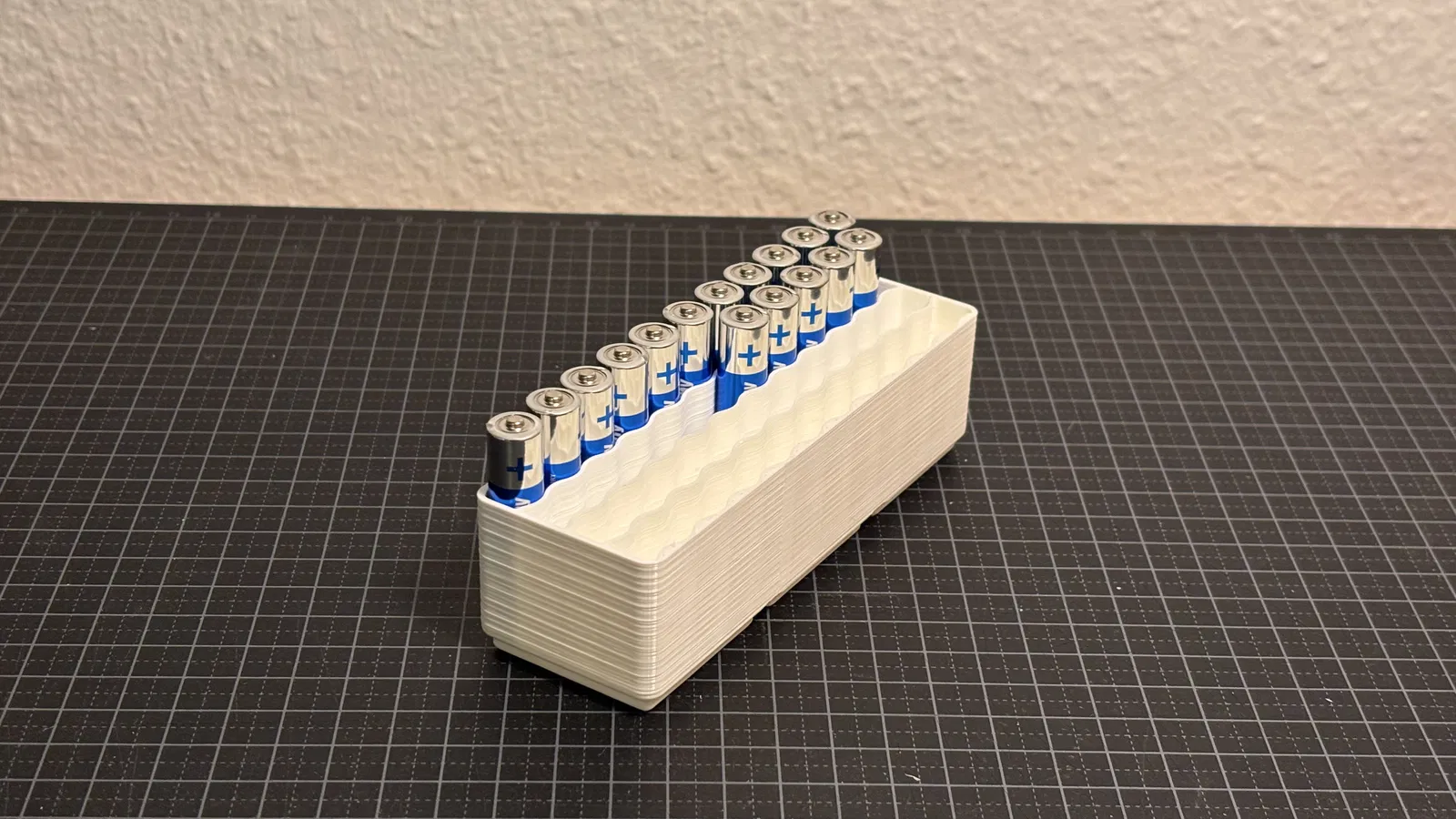 Nếu bạn đang tìm một cách thật phong cách để sắp xếp đống pin AAA của mình, thì đây chính là thứ bạn cần! Hoặc không, tùy ý bạn thôi. Tuy nhiên, khay đựng này được thiết kế để chứa được càng nhiều pin AAA càng tốt một cách hiệu quả nhất. Kiểu thiết kế gợn sóng giúp đựng được tận 42 viên pin, đồng thời giảm thời gian in và tiết kiệm nguyên liệu. Hy vọng bạn sẽ hài lòng với giải pháp lưu trữ pin mới này.